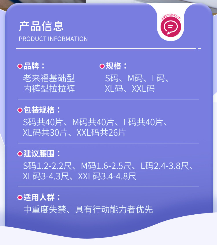 📚 老来福成人拉拉裤纸尿裤老年人拉拉裤男女士尿不湿内裤式L码40片