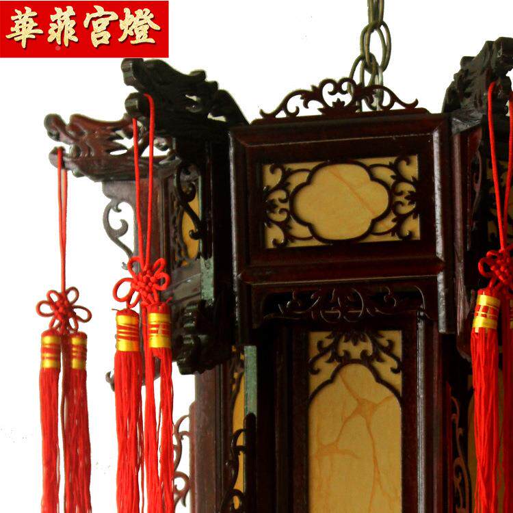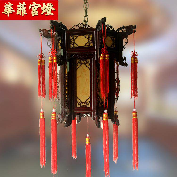 📚 实木仿古六角宫灯复GPI古简约羊皮纸灯笼黄筑园林景区建风装饰古