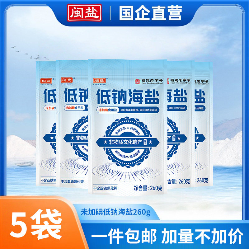📚 闽盐不加碘低钠盐食用盐天然日晒家用食盐不添加抗结剂家庭装整箱