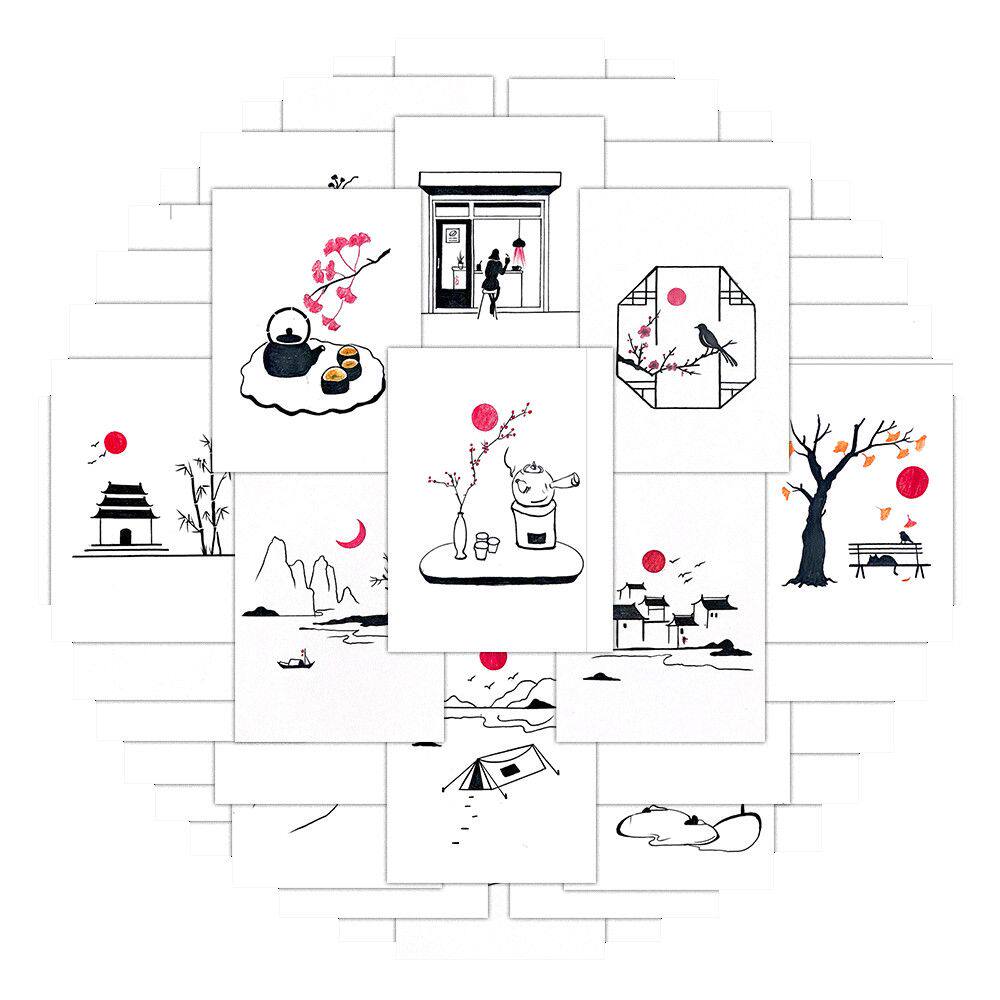 📚 每日一学简笔画山水贴纸线描古风入门素材初学diy贴画手机壳桌面