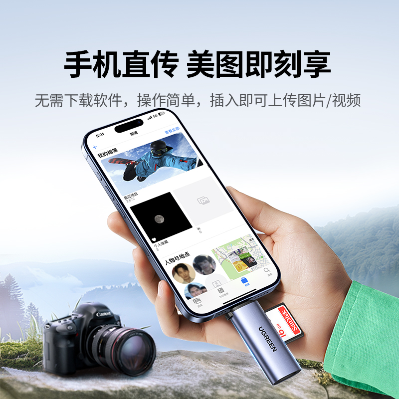 📚 绿联手机读卡器typec高速适用大疆苹果16e小米iphone17相机佳能ccd多合一内存转接头usb3.0电脑sd卡tf读取器