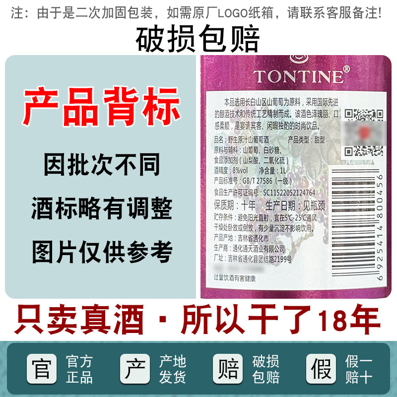 📚 通化通天野生原汁山葡萄酒8%vol 1L装大容量 甜酒红酒 T
