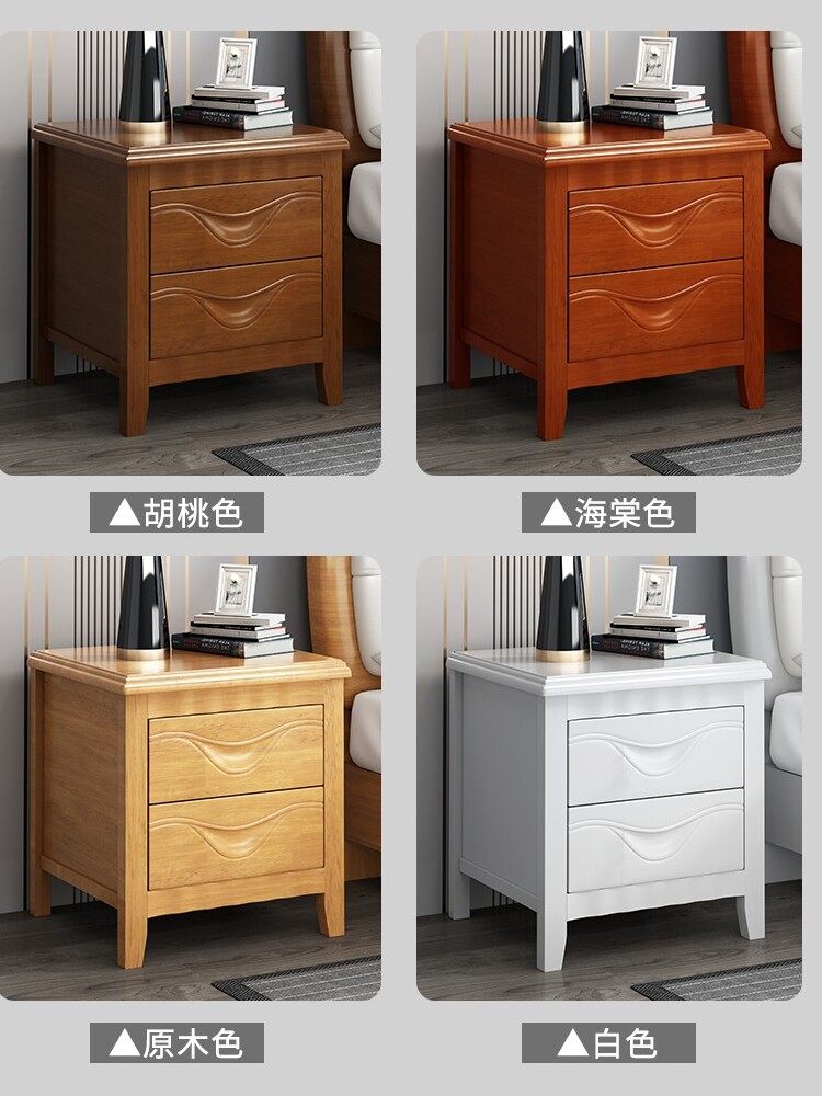 📚 实木新中式床头柜带锁卧室家用简约现代轻奢床边收纳储物柜免安装