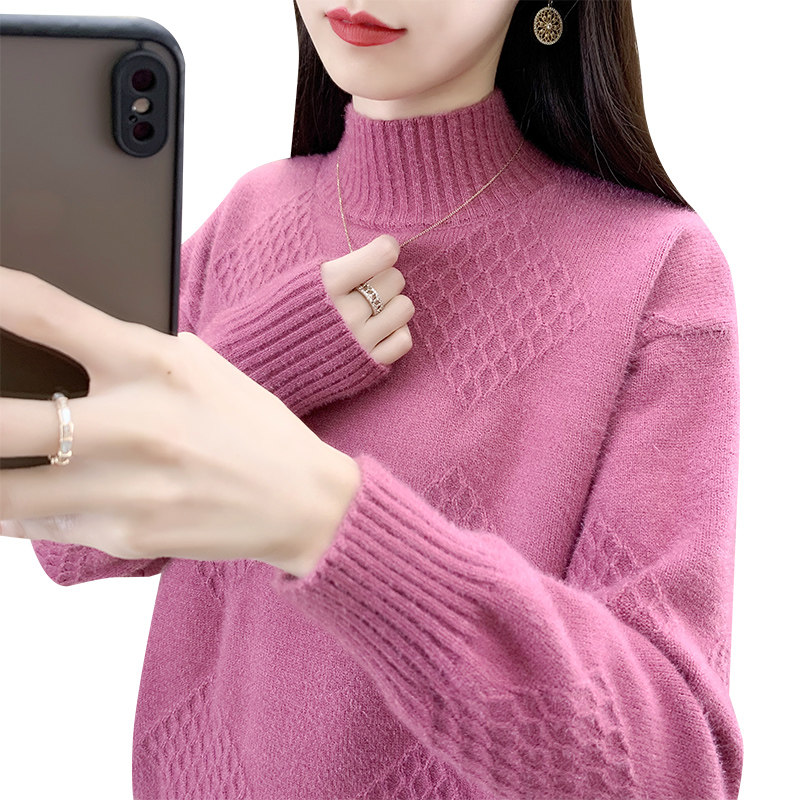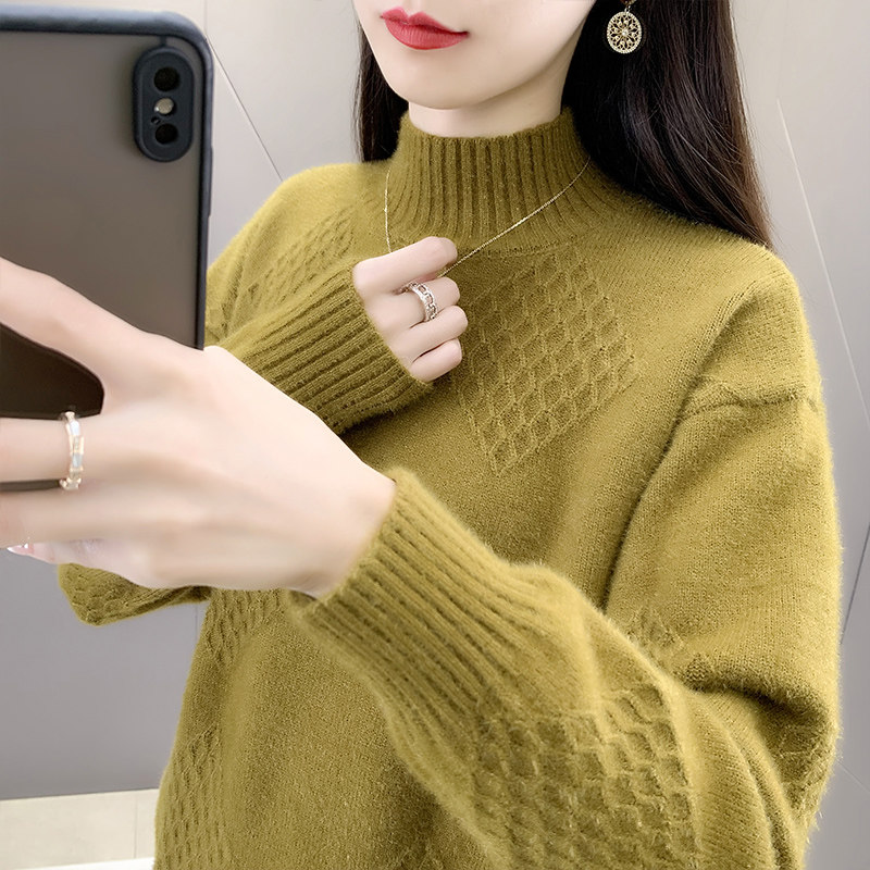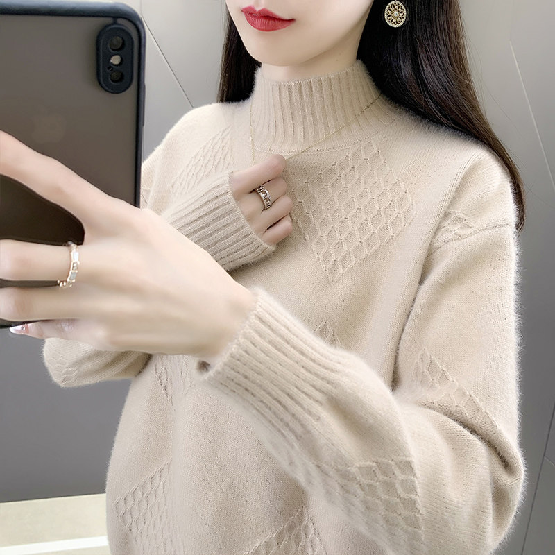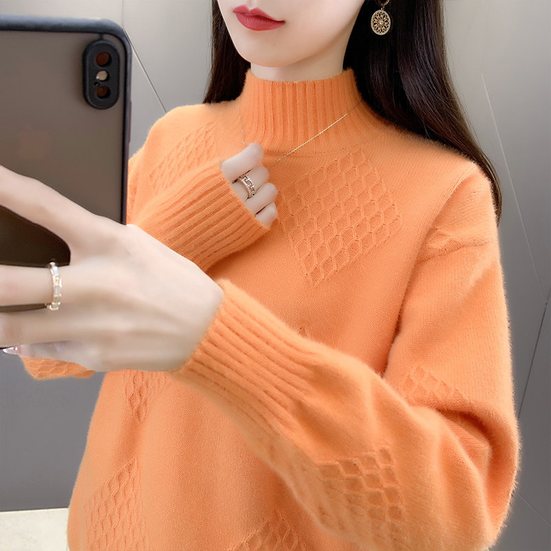 📚 毛衣女秋冬新款水貂绒加绒半高领针织上衣女慵懒风冬季内搭打底衫