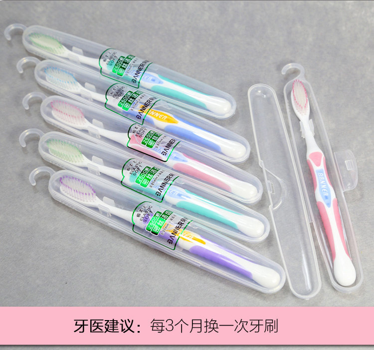 📚 2支包邮贝诺018成人高密深层清洁软毛牙刷出门旅行桶装干净便捷