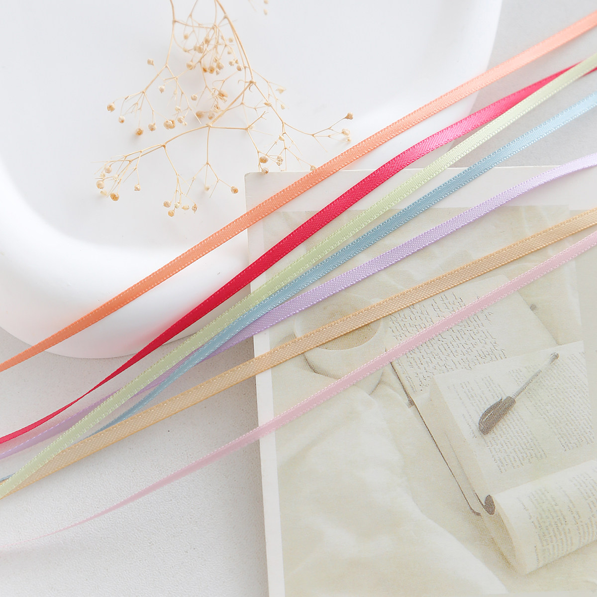 📚 3mm双面涤纶织带编发丝带发饰蝴蝶结DIY礼品装饰加密细彩带绸带