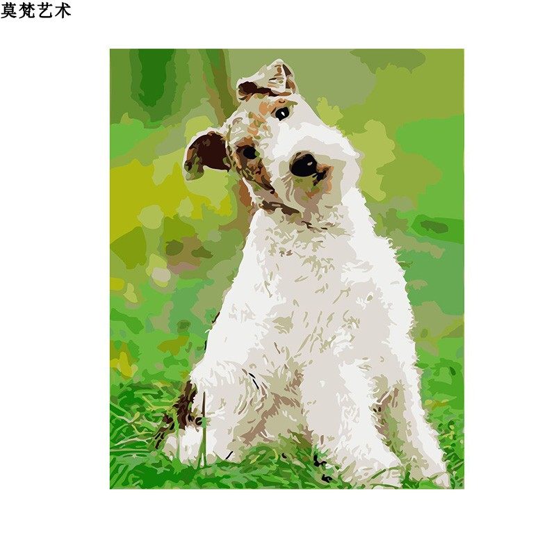 📚 数字油画diy手工填充英国刚毛猎狐梗犬手绘涂色可爱小狗油彩画画