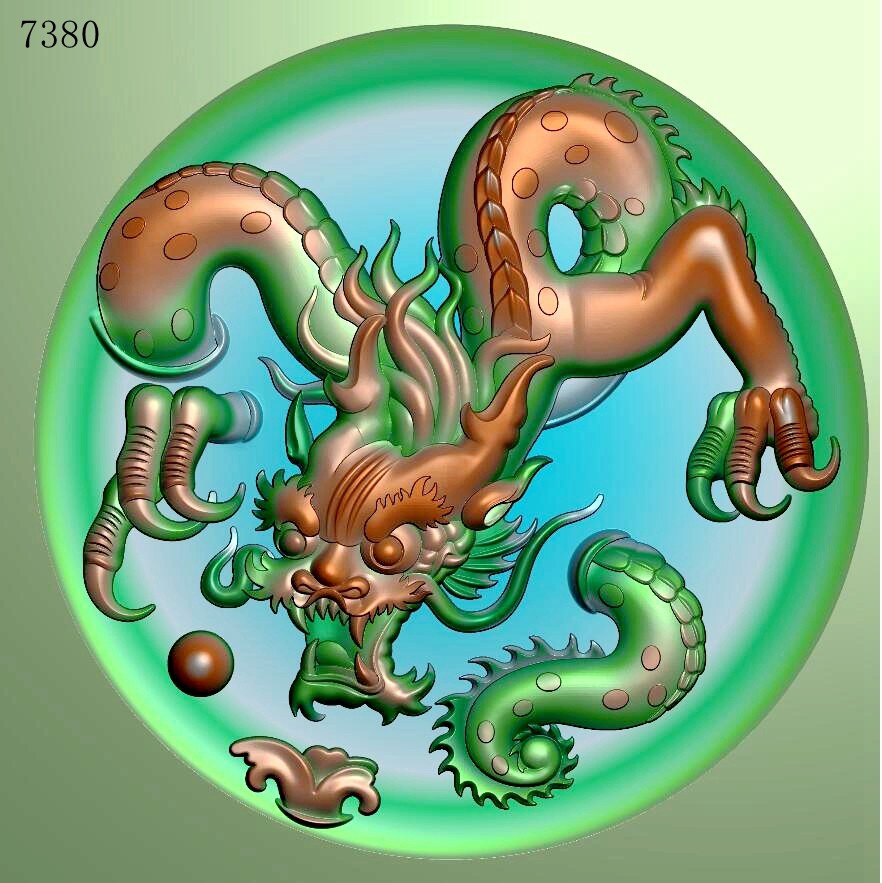 📚 7380圆龙牌精雕图JDP/灰度图BMP/玉雕挂件雕刻机文件浮雕图