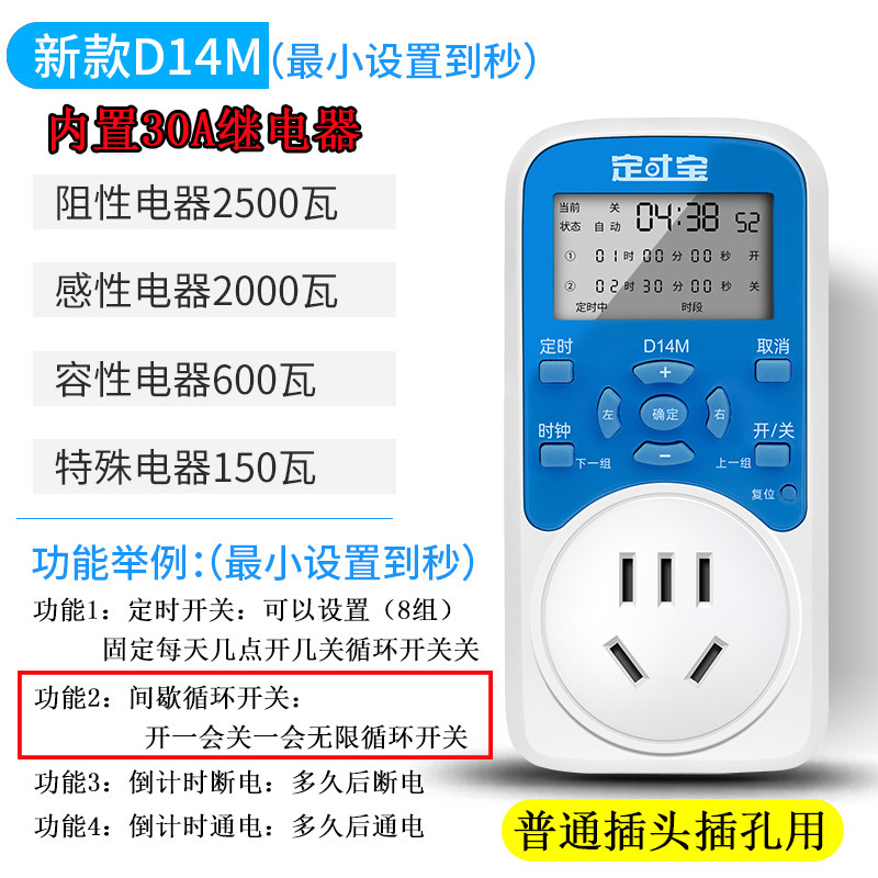 📚 定时器大功率电器智能间歇循环水泵自动断电无限开关插排定时插座