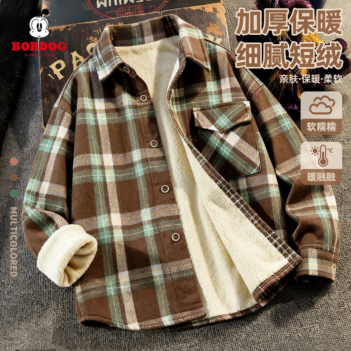 📚 巴布豆女童格子衬衫加绒加厚2026新款冬季儿童衬衣帅气小女孩衣服