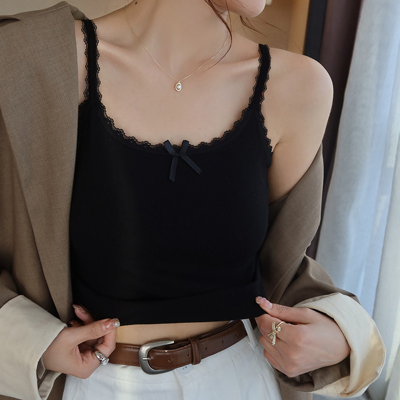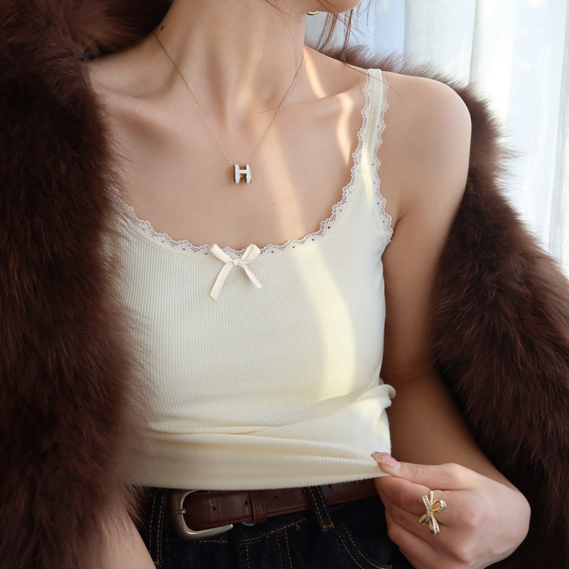 📚 红色蕾丝加绒保暖吊带背心女内搭外穿2025秋冬新款带胸垫打底上衣