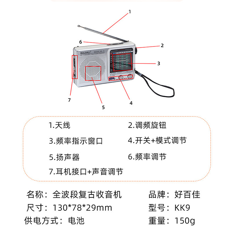 📚 全波段收音机迷你便捷电台广播调频FM中短波AM调幅老式年人外贸