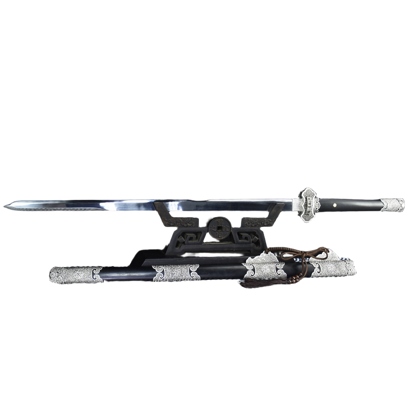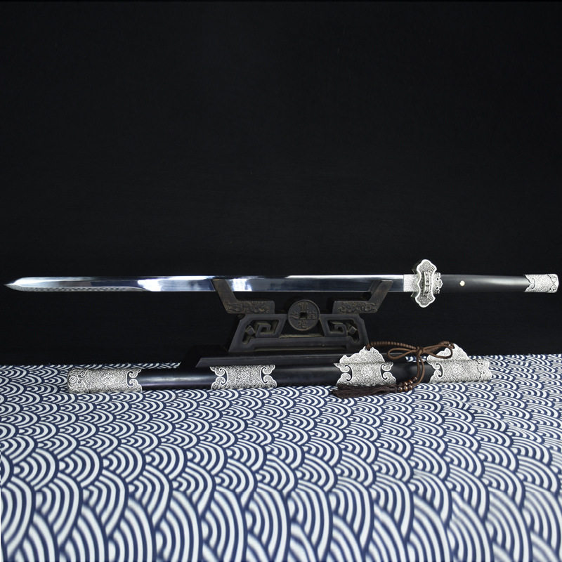 📚 龙泉市刀剑高锰钢唐剑仿古银一体长剑手工锻打宝剑冷兵器未开刃