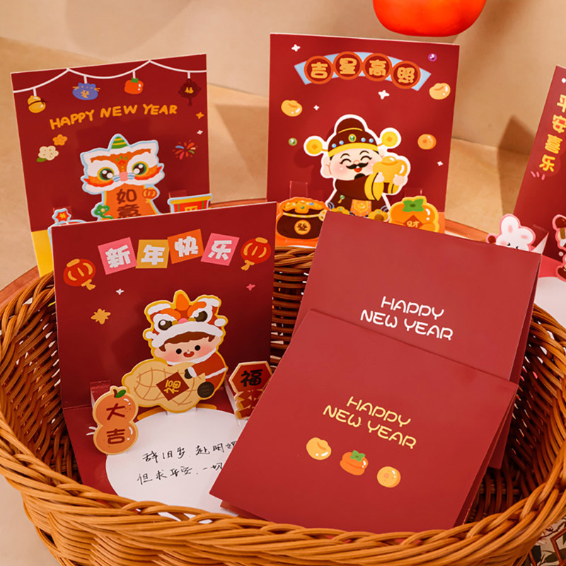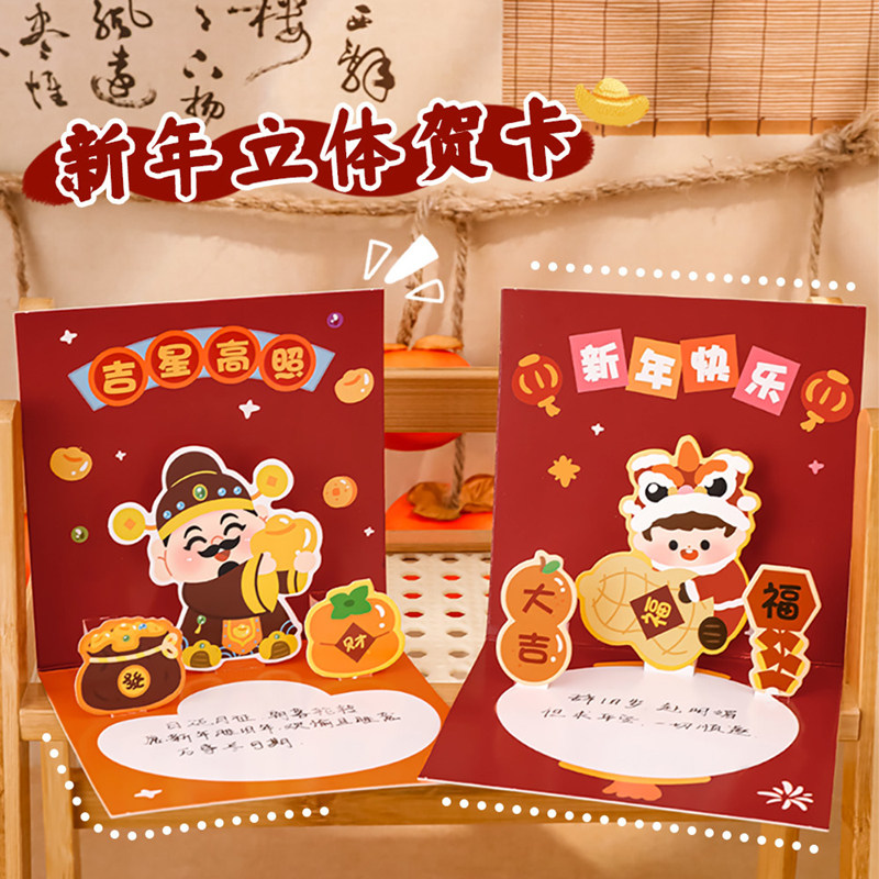 📚 立体3d元旦新年祝福留言卡片手写2026过年春节送老师同学礼物装饰小卡片小学生心愿心意明信片diy贺卡送孩子