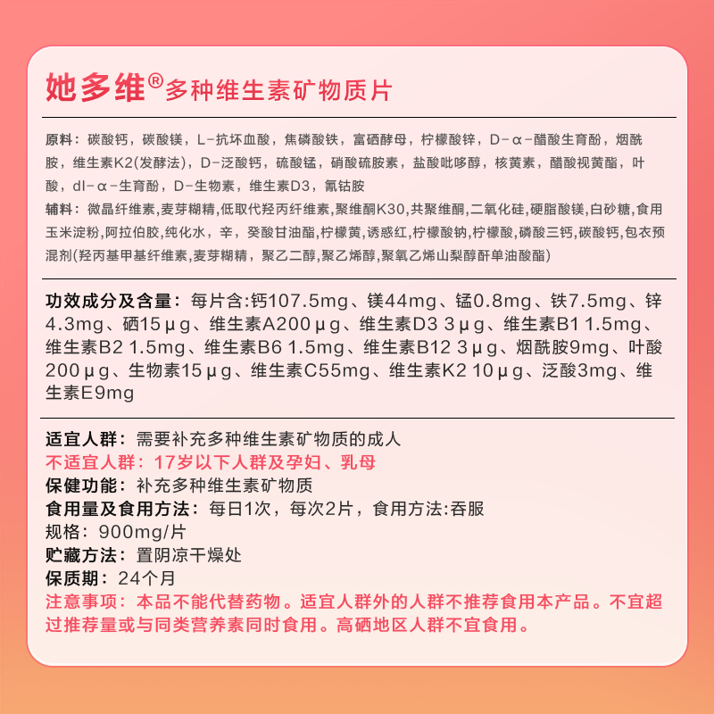 🍀首先,这款汤臣倍健她多维双层片含有多种维生素和矿物质,特别适合女性朋友。特别是其中的碘铜元素,对于女性来说,真的是非常有益的。而且这款产品还特别添加了多种维生素B族、VCE铁和叶酸钙,能够满足我们日常所需的各种营养元素。💪
