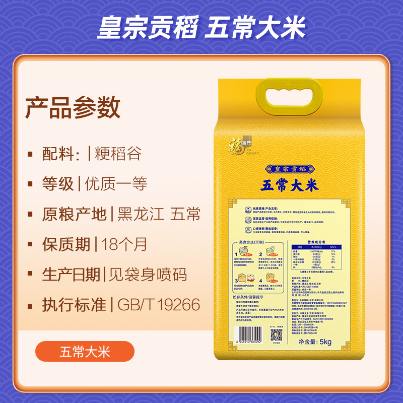 📚 福临门皇宗贡稻五常大米5kg*4整箱东北大米GB/T19266