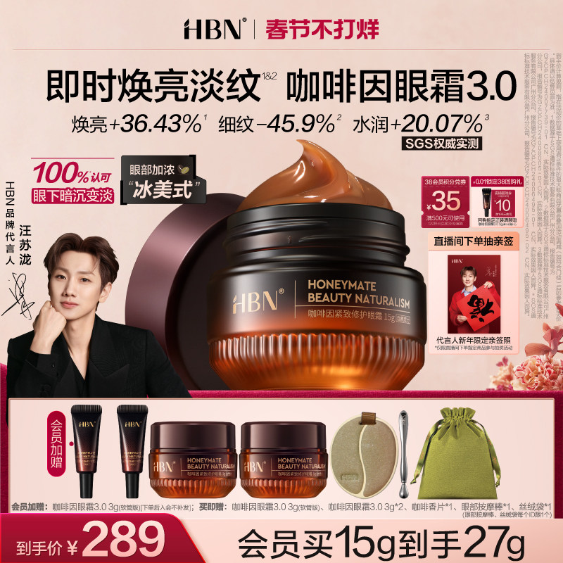 📚 【汪苏泷同款】HBN咖啡因眼霜3.0冰美式提亮眼周淡纹提拉抗皱保湿