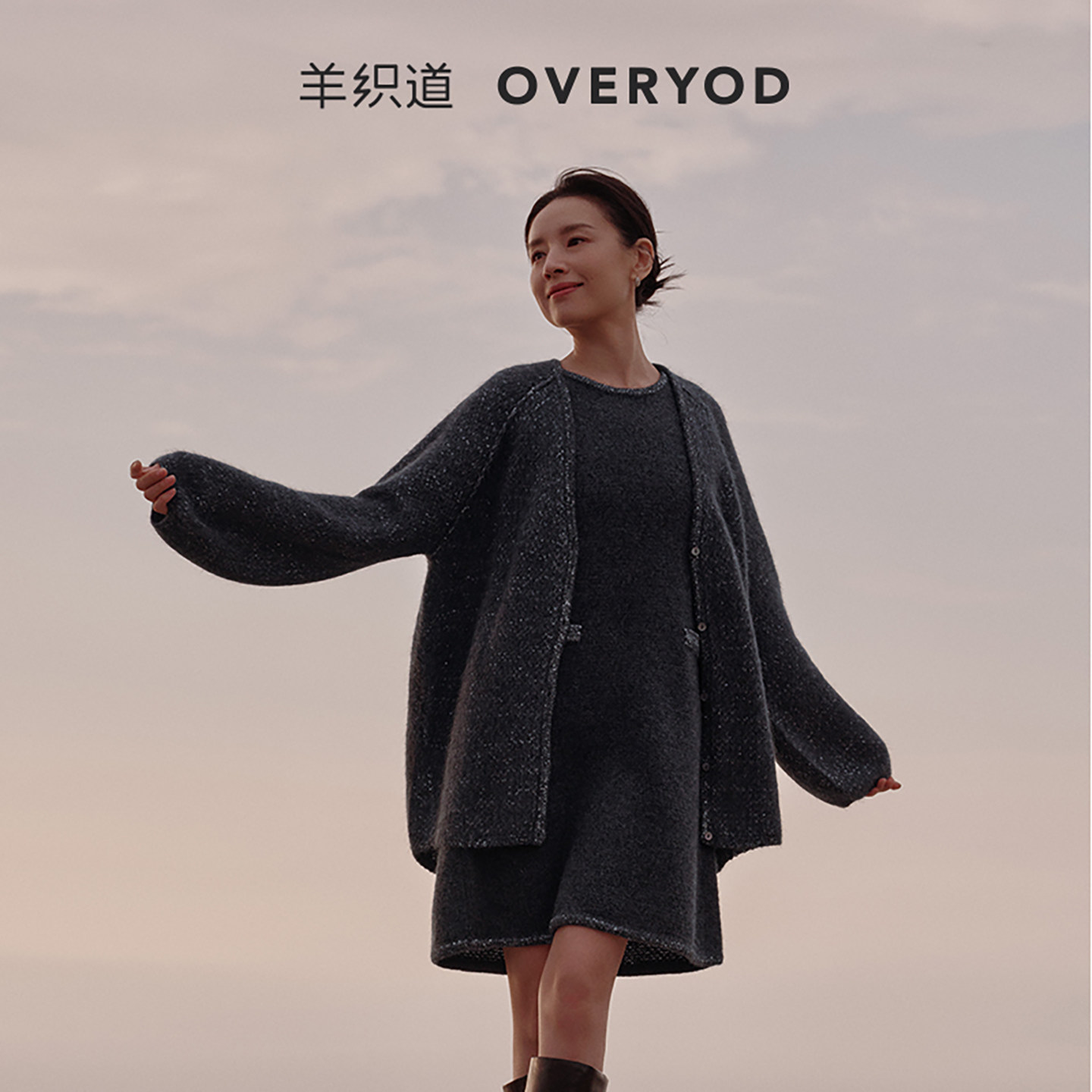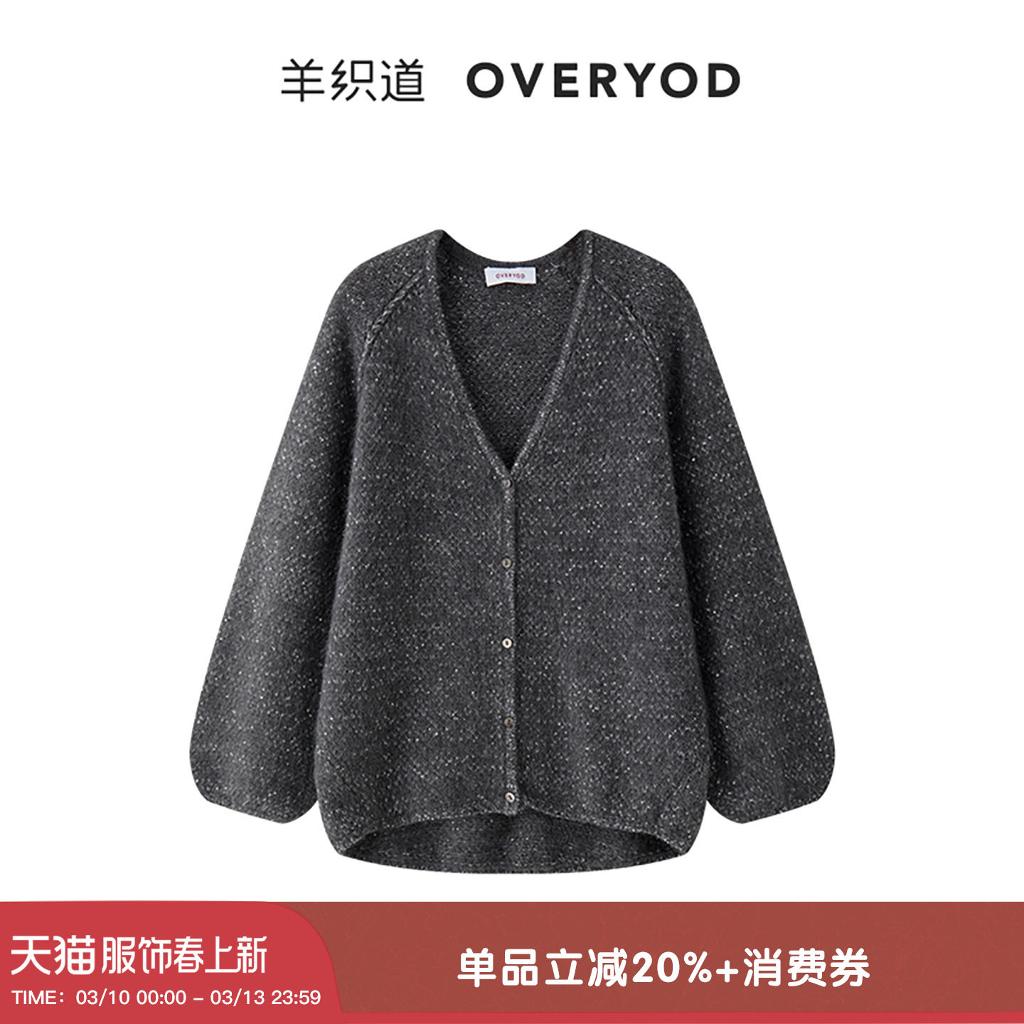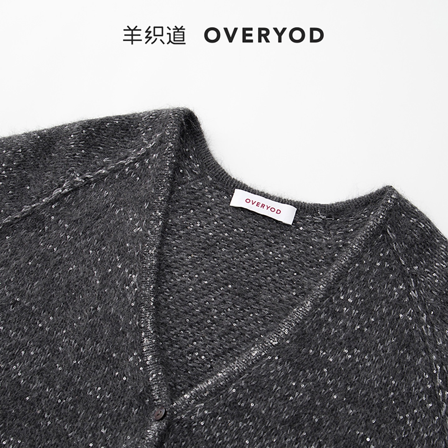 📚 【明星联名款】羊织道 珍宝金 牦牛绒灰色珠片v领针织开衫上衣女