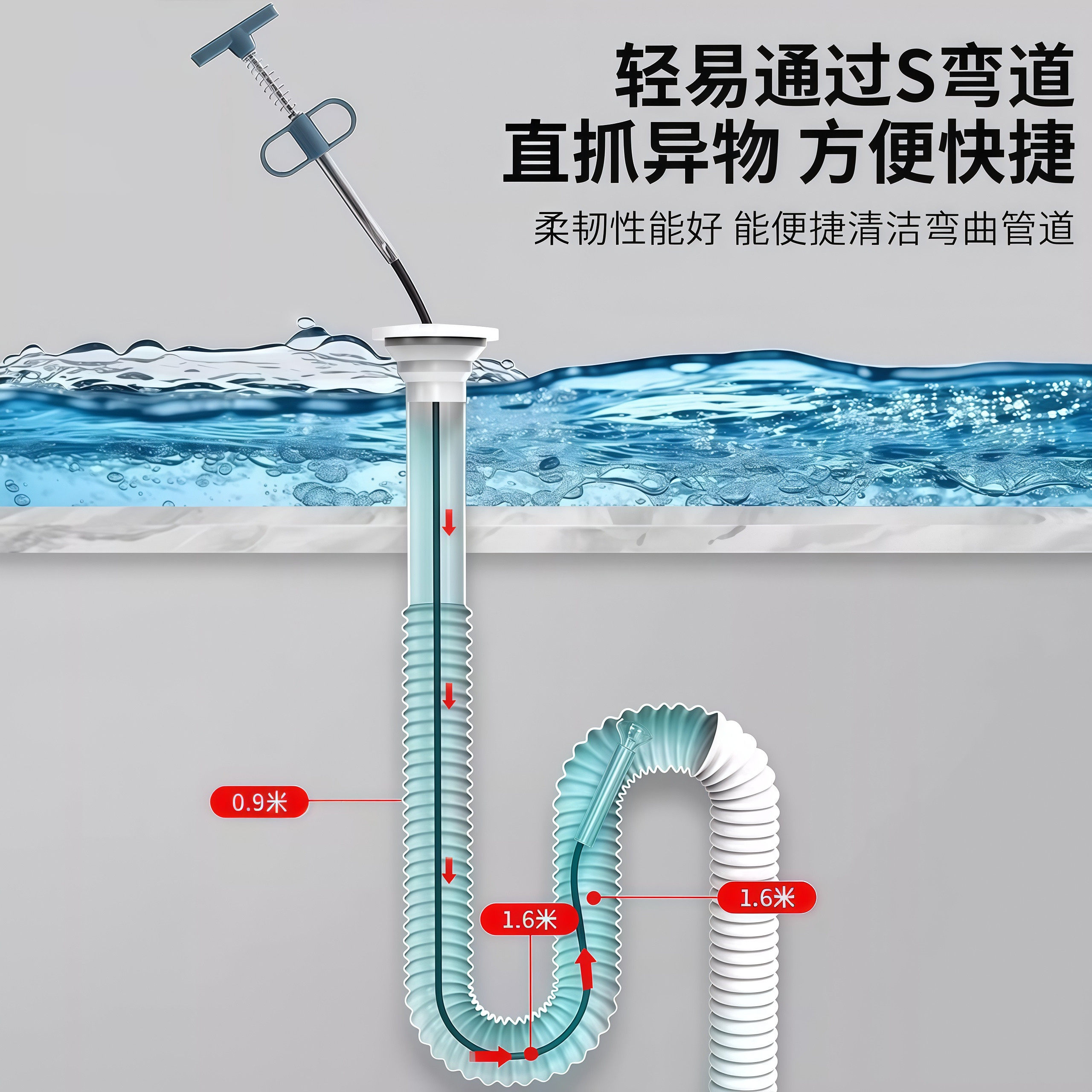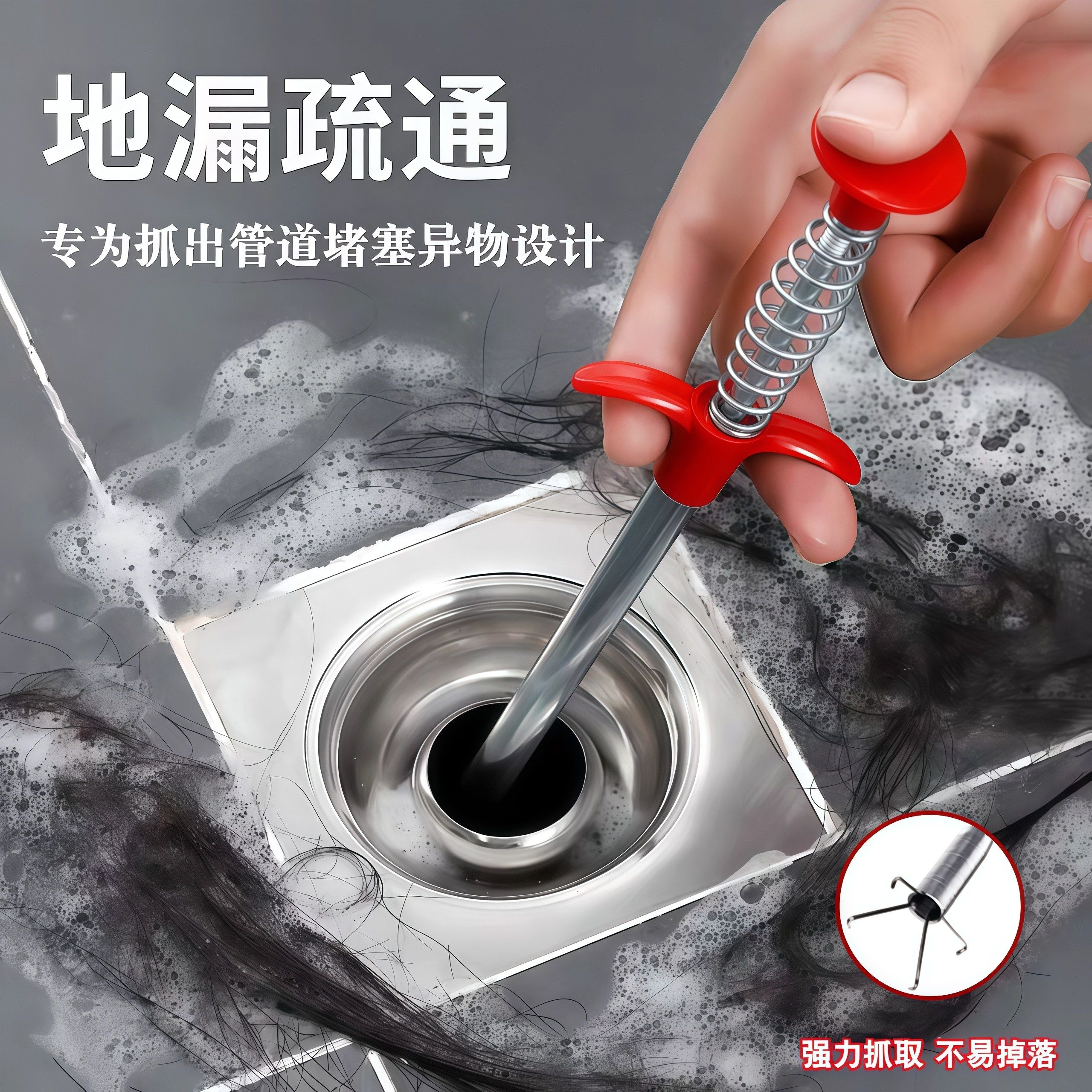 📚 管道疏通夹下水道异物垃圾夹四爪取物器厕所弹簧钩子马桶清理工具