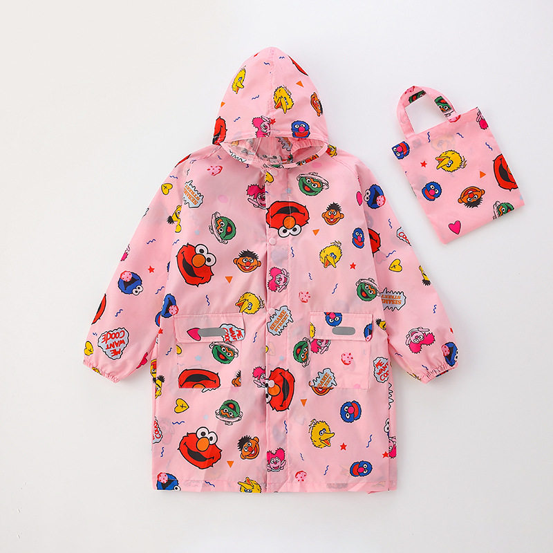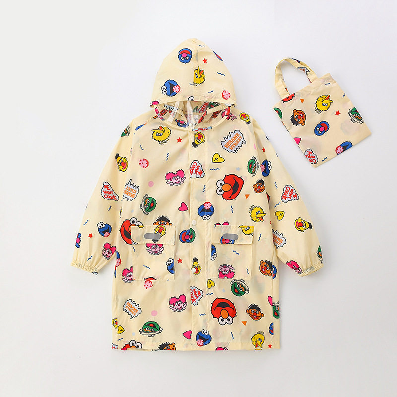 📚 日单速干轻薄儿童中小学生带书包位雨衣芝麻街幼儿园宝宝大码雨披
