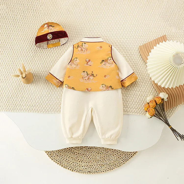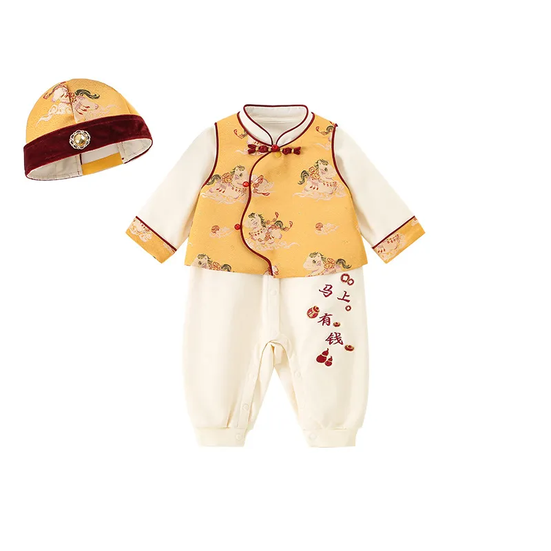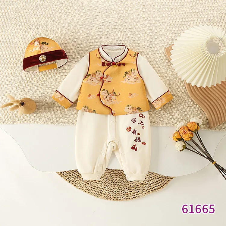 📚 春季新款童装婴儿连体衣 小少爷唐装宝宝生日礼服爬服哈衣三件套