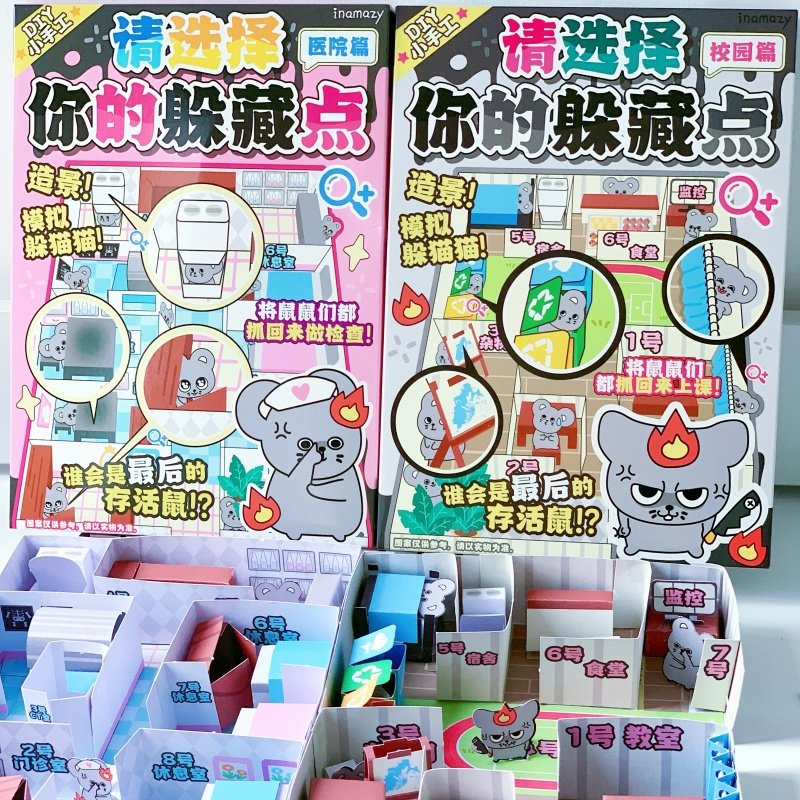 📚 inamazy请选择你的躲藏点校园儿童模拟躲猫猫造景DIY捉迷藏桌游戏