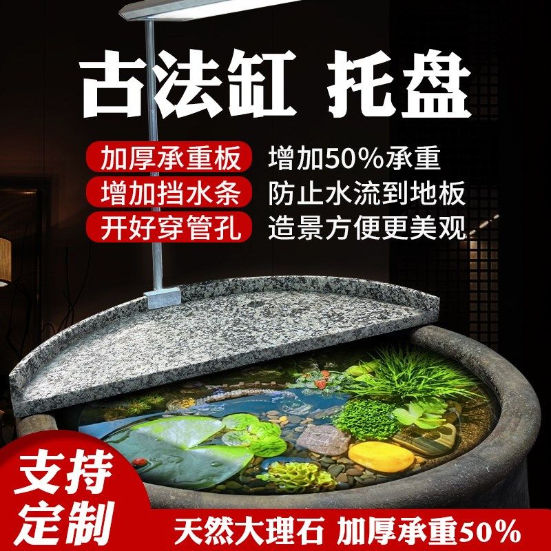 📚 古法缸造景托盘大理石材挡水围挡造景托盘老水缸陶盆造景改造养鱼