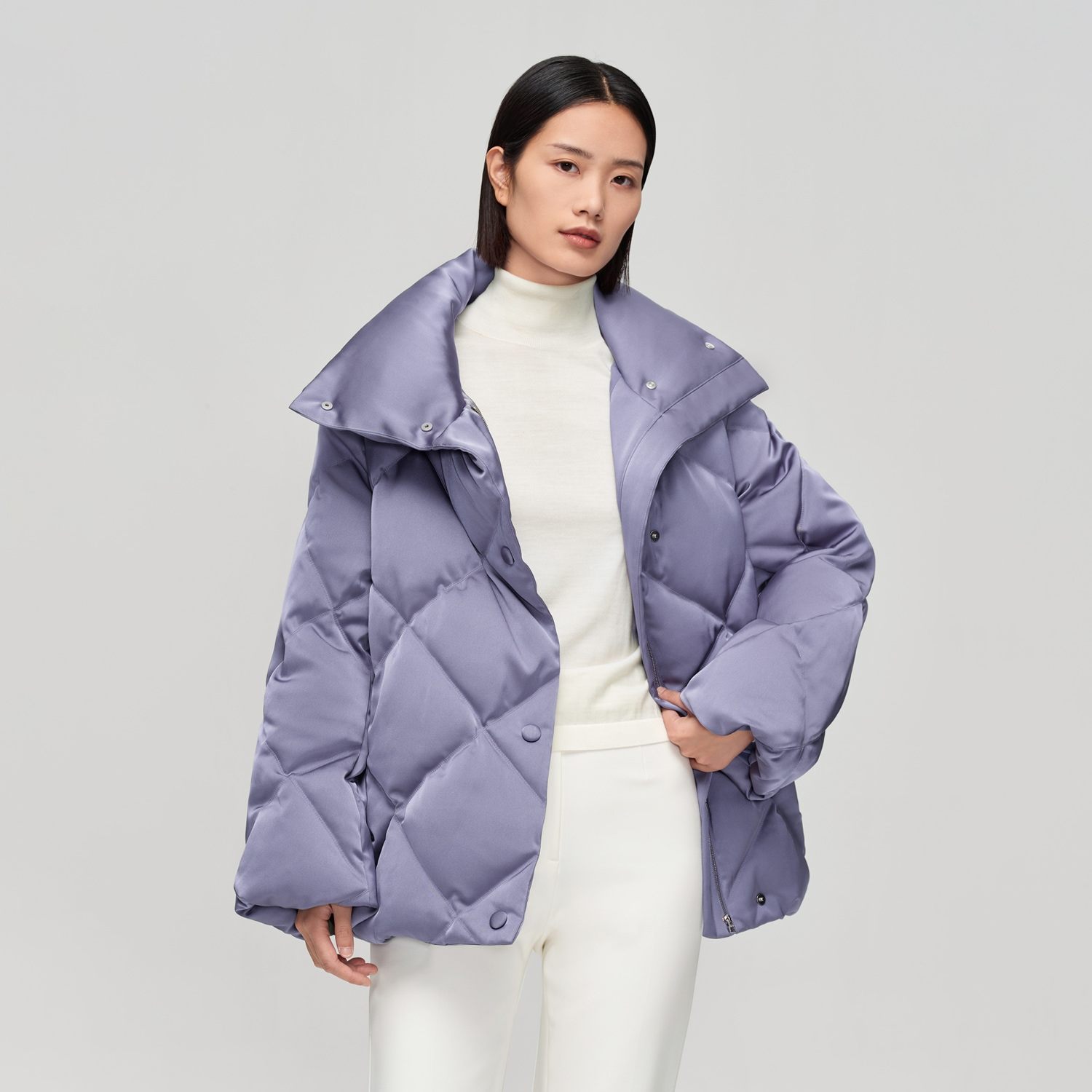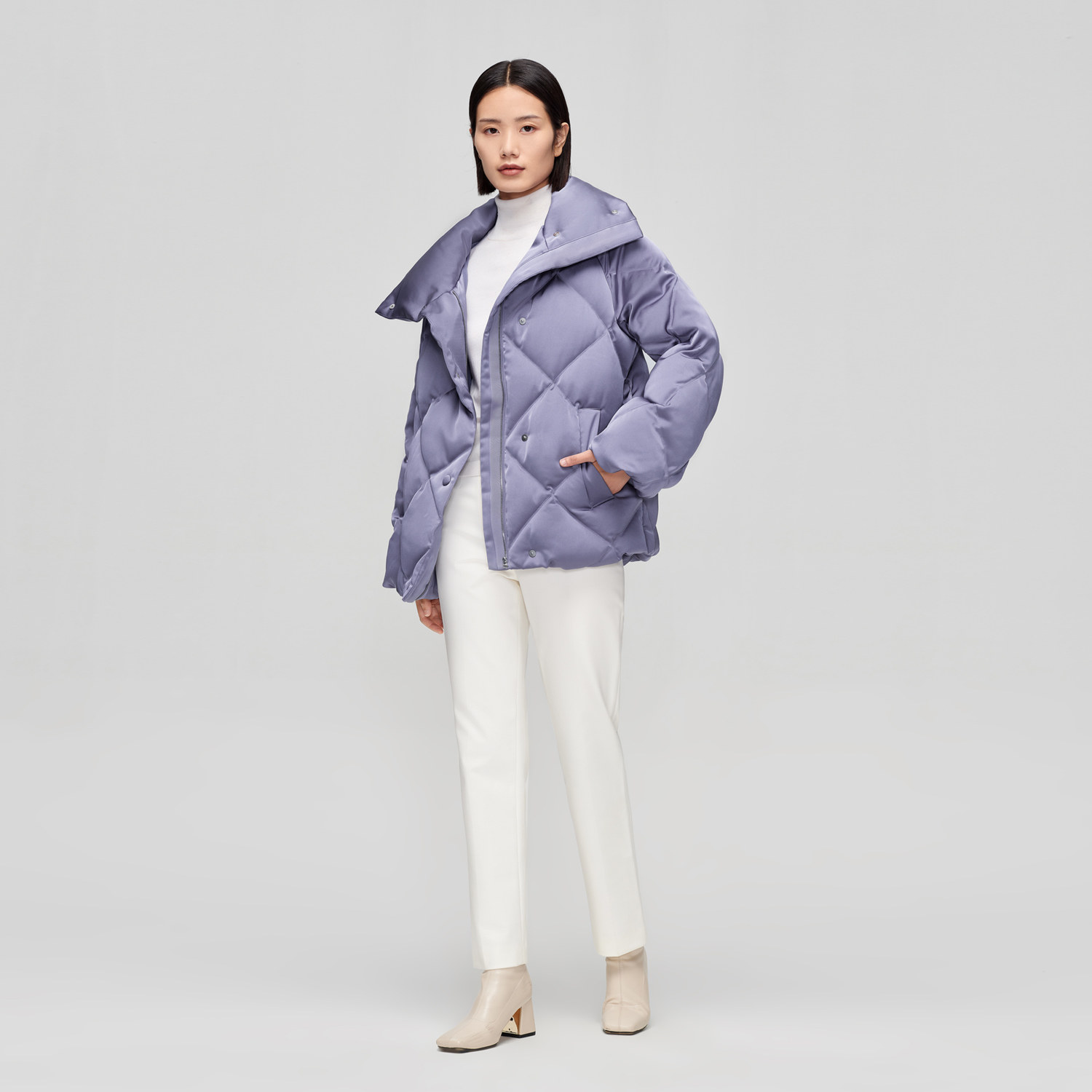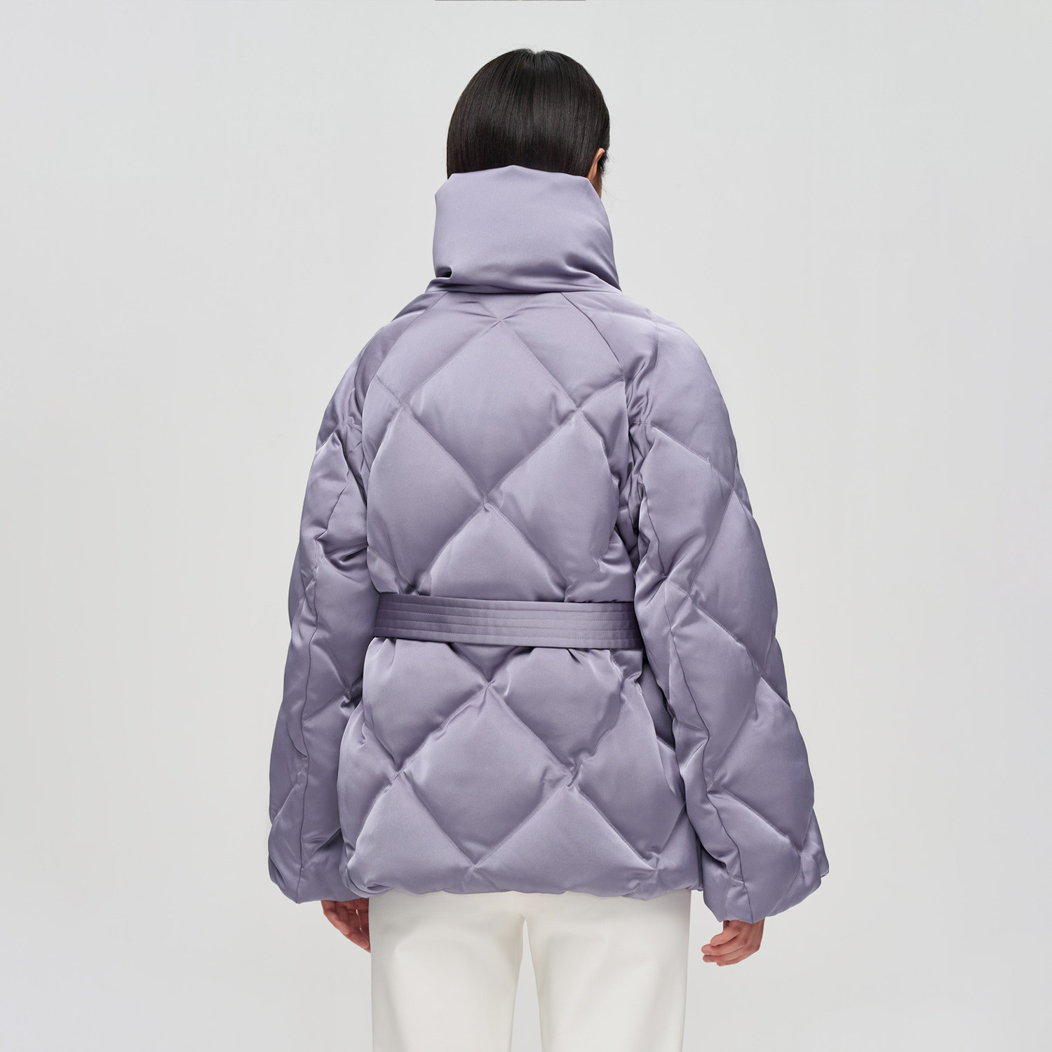 鹅绒缎面高领菱形羽绒服