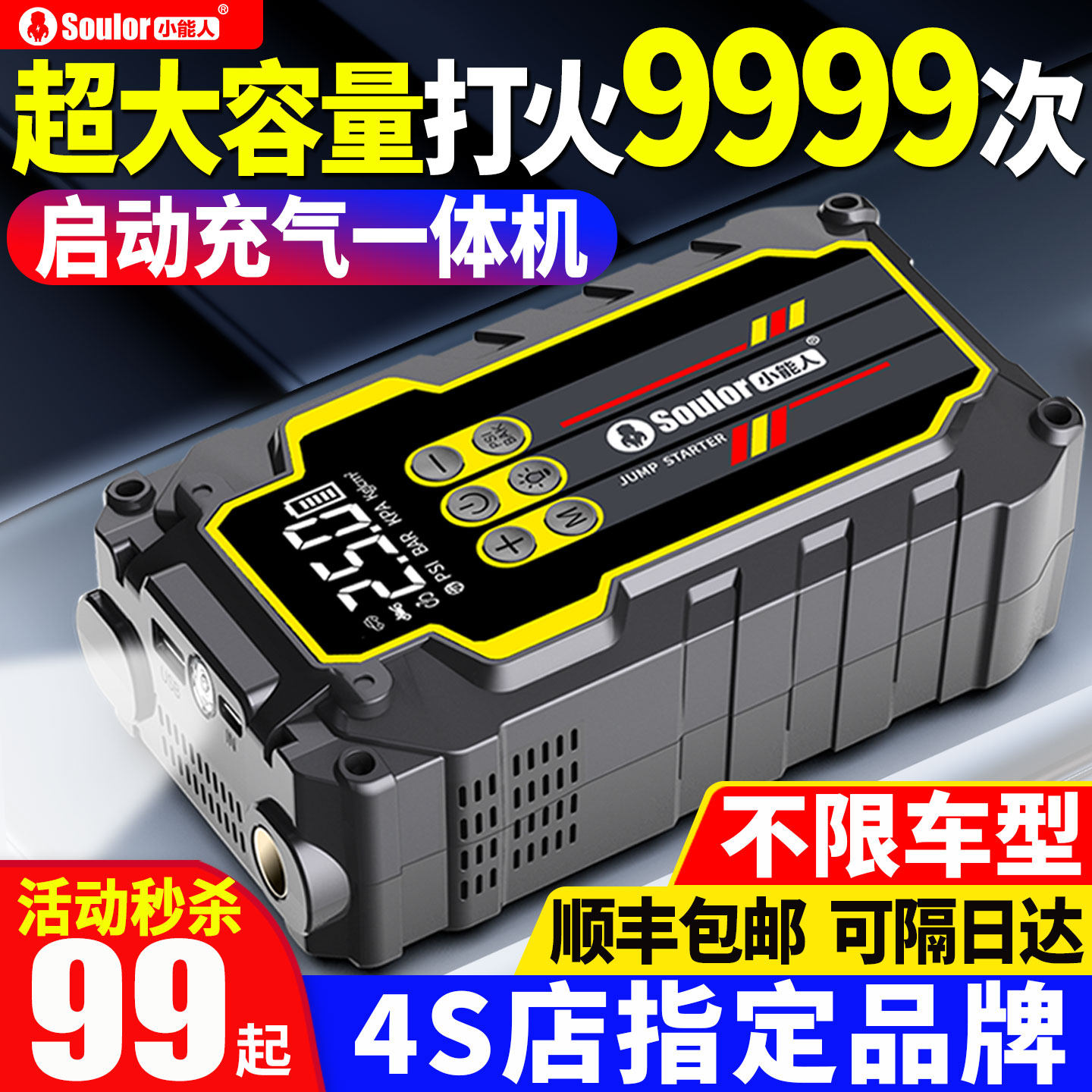 💥超值!小能人汽车应急启动电源充气泵一体机电瓶搭电宝,券后价159秒变“救命神器”🔥