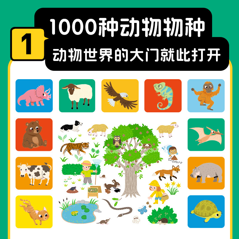 📚 【点读版】我的1000个动物朋友1-4岁宝宝儿童认知力培养动物认知大书哺乳卵生胎生爬行两栖海洋昆虫与节支史前动物恐龙科普大百科