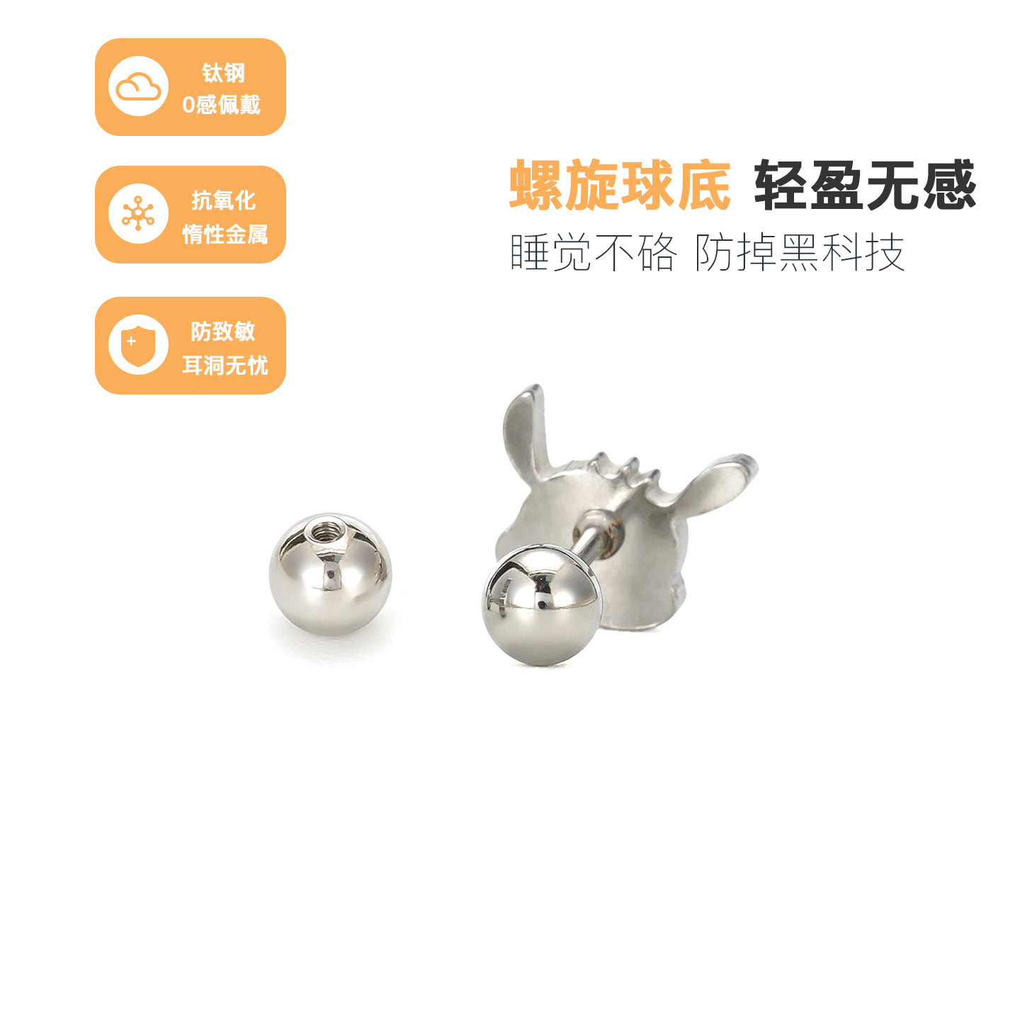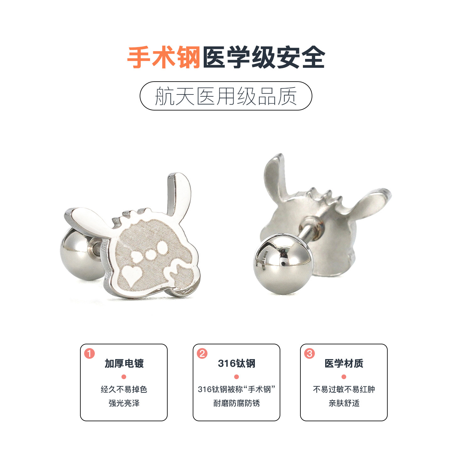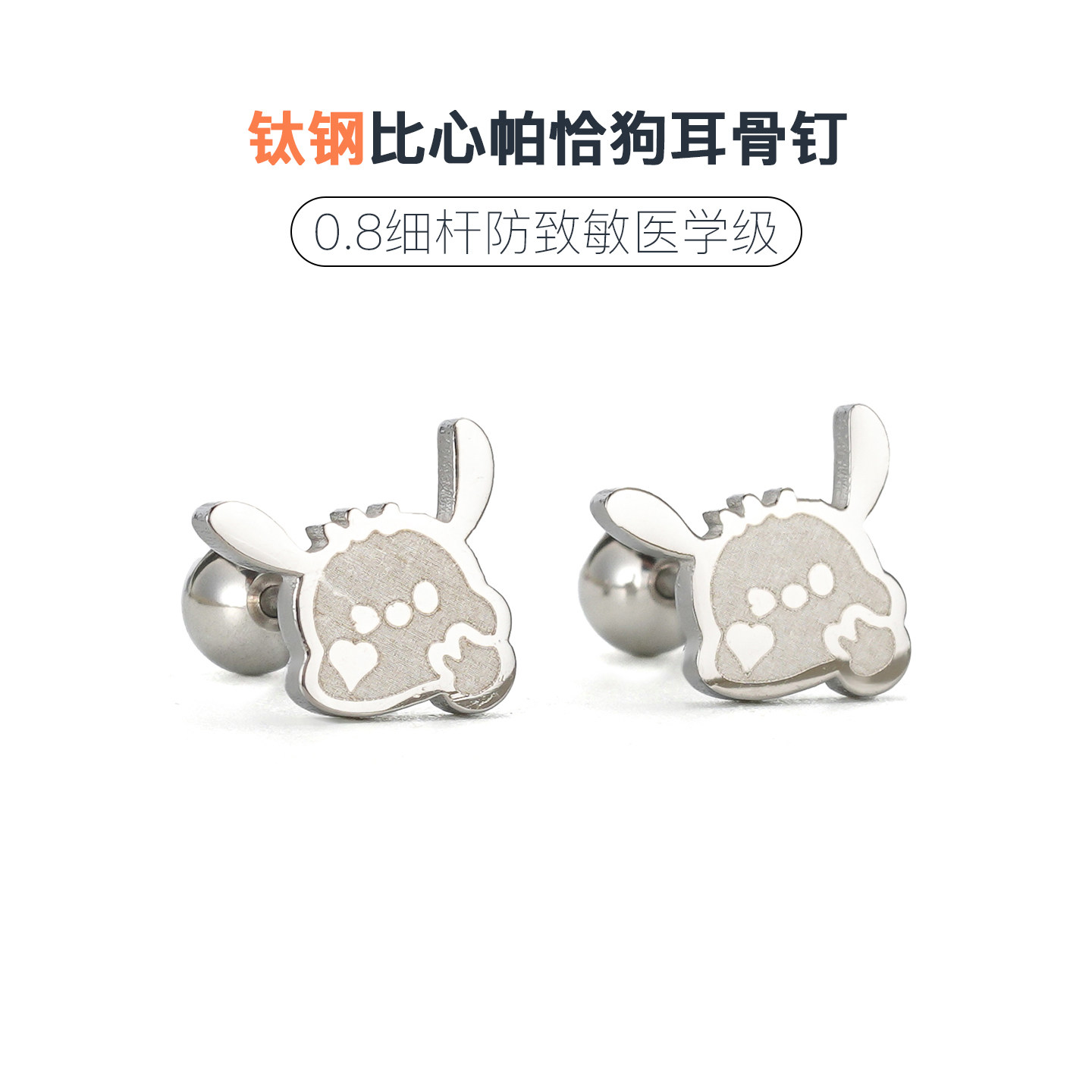 📚 比心帕恰狗拧螺丝耳骨钉女养耳洞防过敏睡觉免摘可爱医用钛钢耳钉