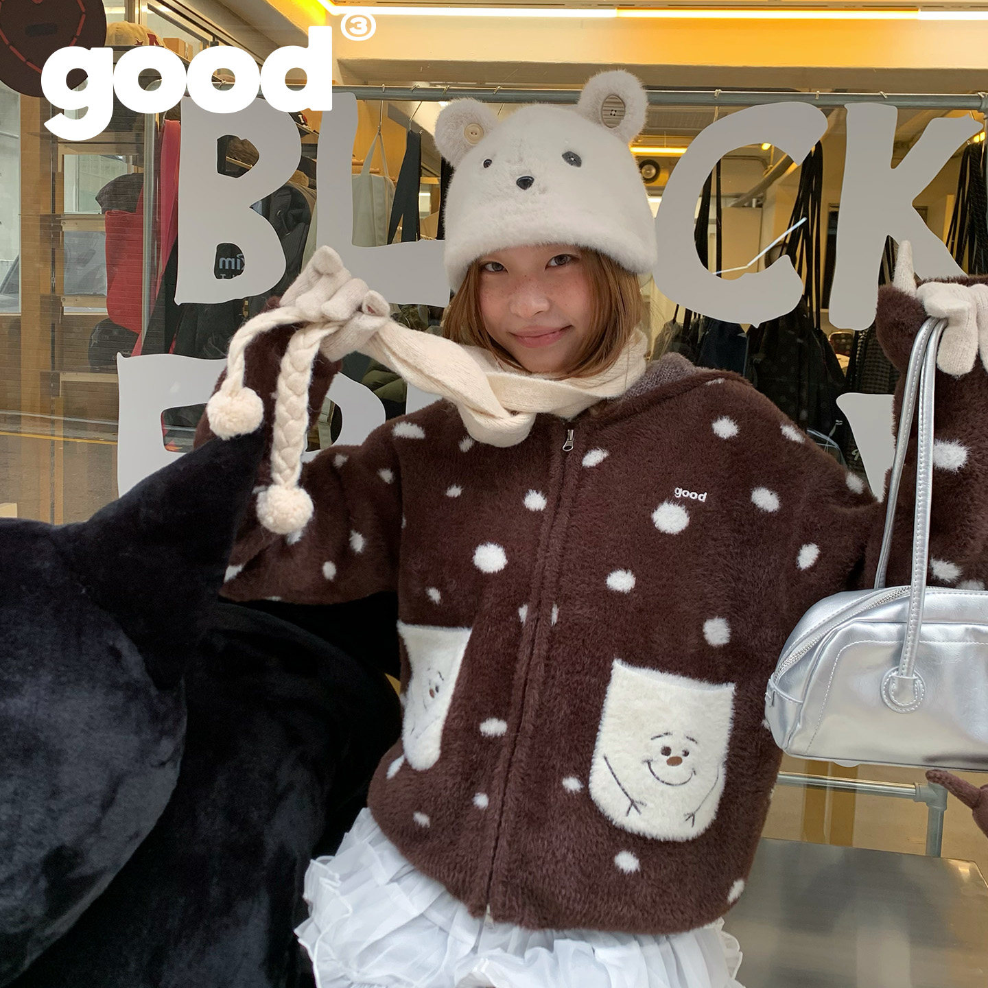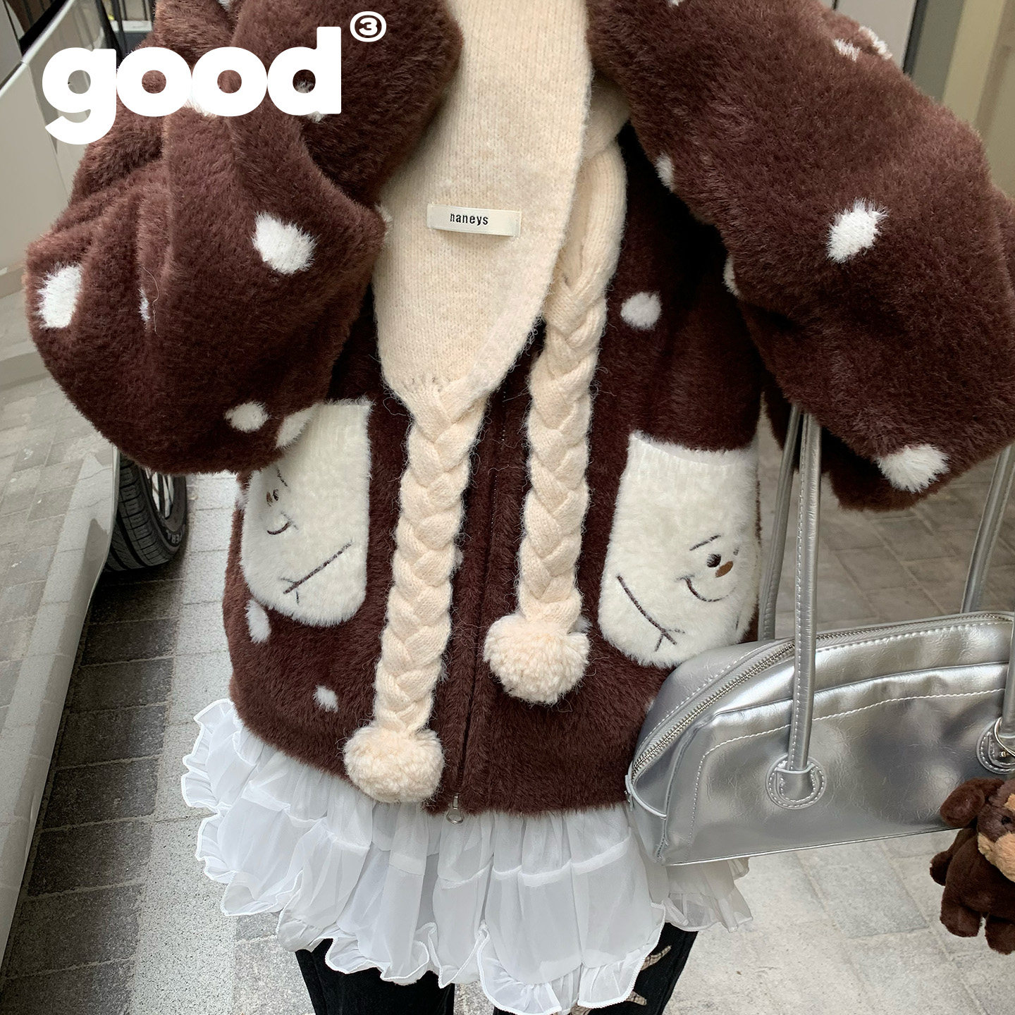 📚 美好商店MeihaoStore「雪人糖霜」深咖色毛茸茸连帽毛衣外套