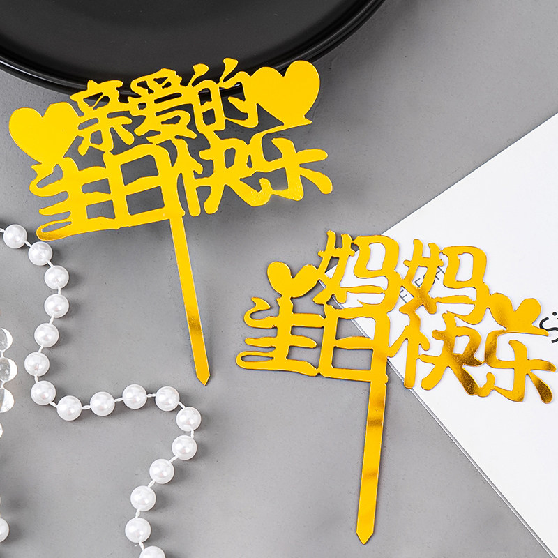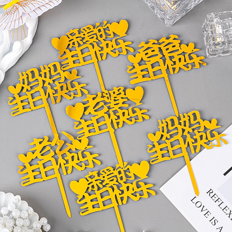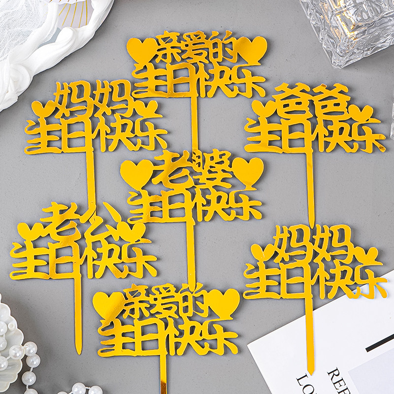 📚 爸爸妈妈生日快乐蛋糕装饰亚克力插牌老公老婆亲爱的生日祝福插件