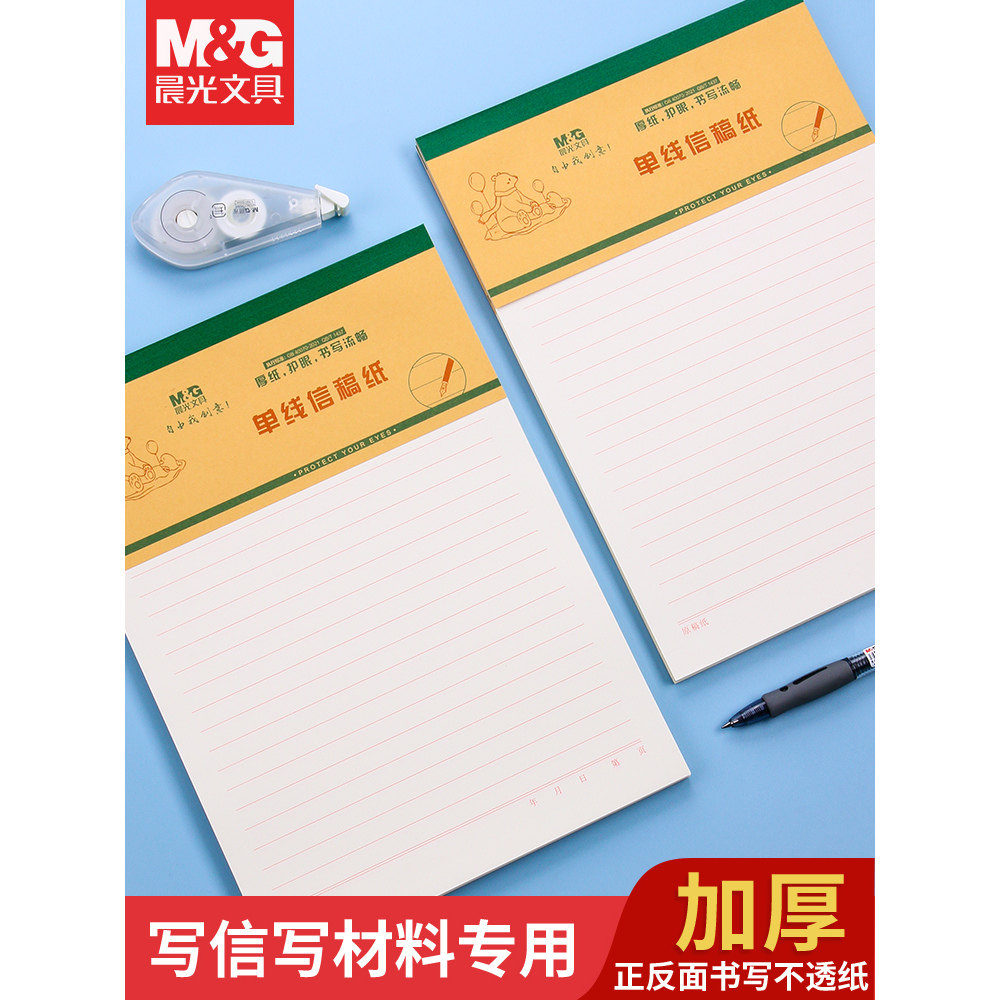 📚 晨光单线信纸本大学生用信稿纸横线写信纸双线信纸材料书写专用纸加厚信笺纸入团申请信稿纸信签纸学生稿纸本