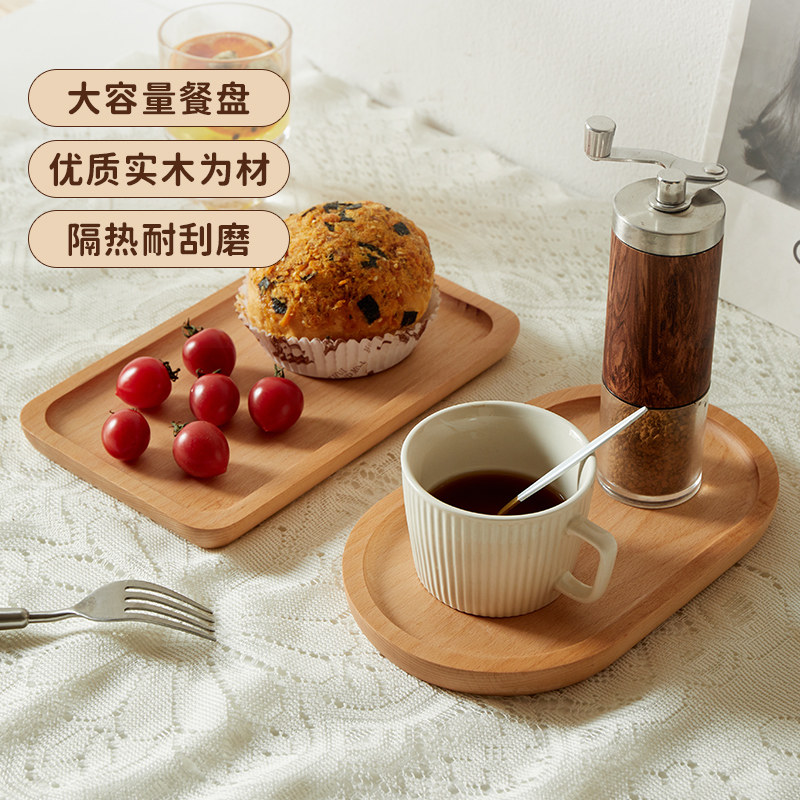 📚 日式椭圆木质托盘实木长方形餐盘黑胡桃下午茶咖啡托盘精致小托盘