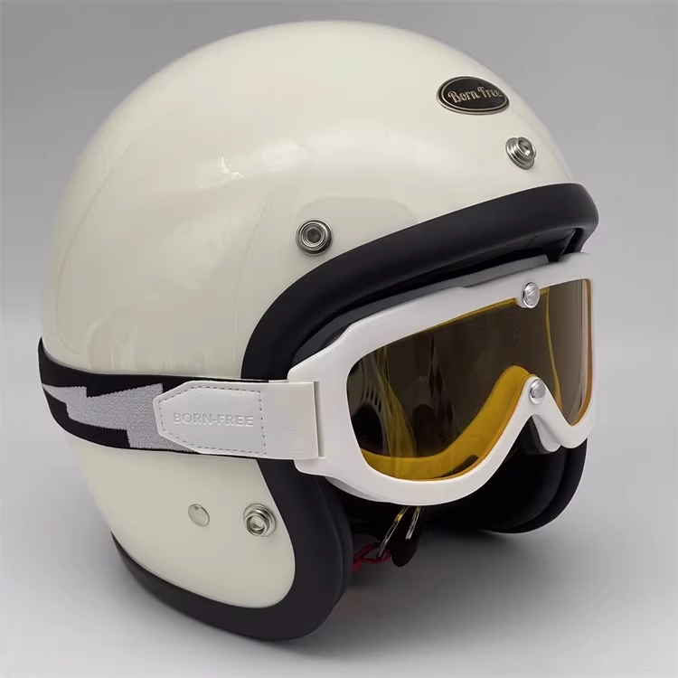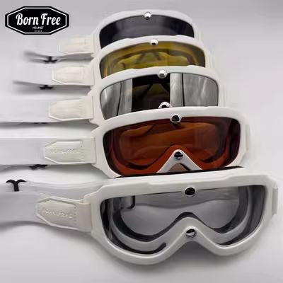📚 Bornfree风镜复古小体头盔大框摩托机车Shorty moto3防晒护目电镀
