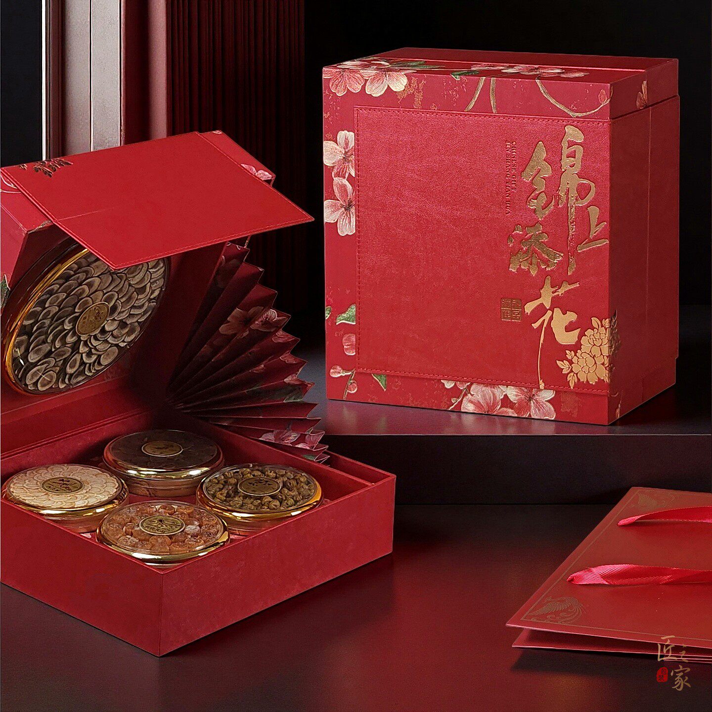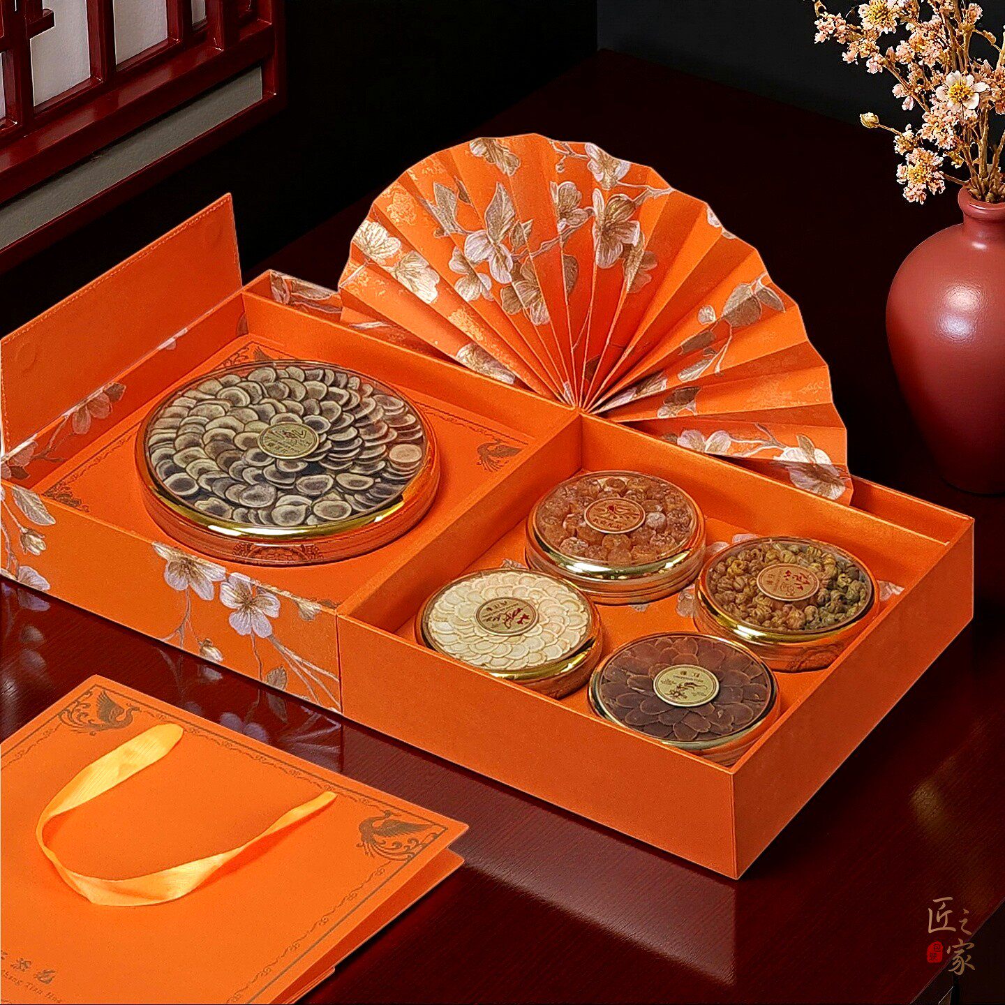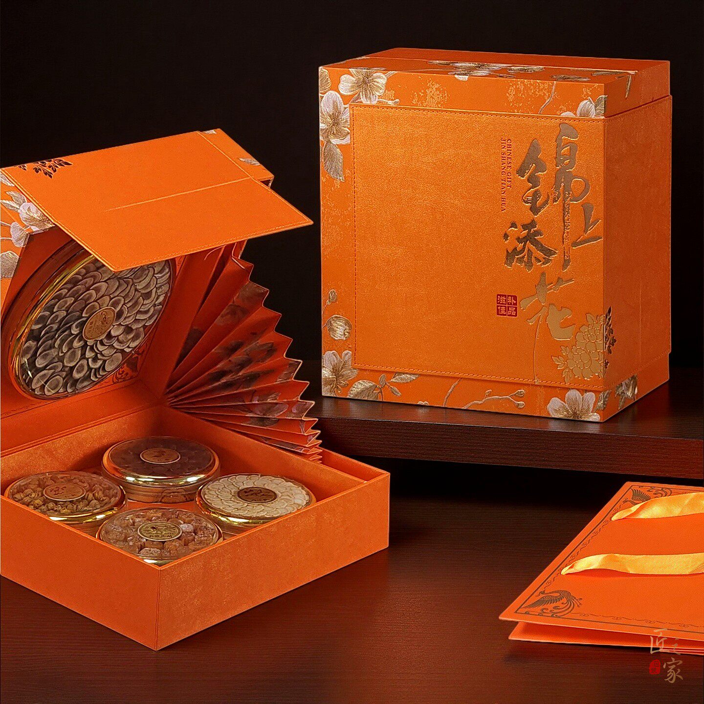 📚 锦上添花双圆礼盒虫草石斛五拼八拼滋补品红色橙色通用包装盒空盒