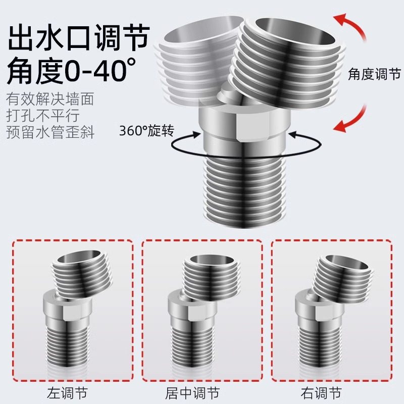 📚 花洒万向曲角加长弯头淋浴龙头配件变径弯脚偏心螺丝拐脚弯角接头