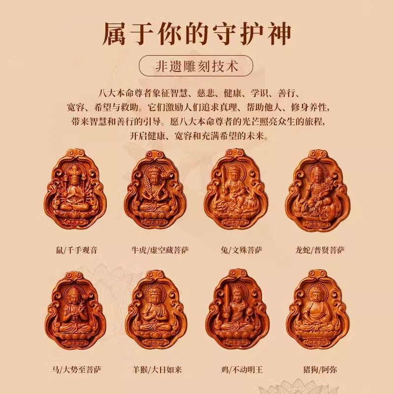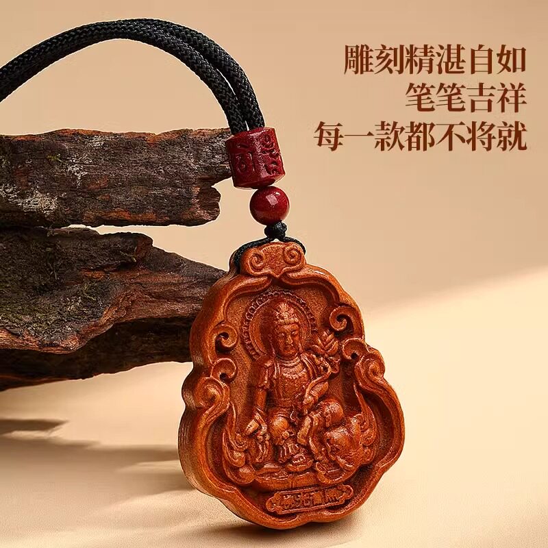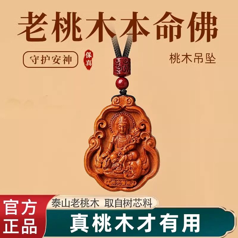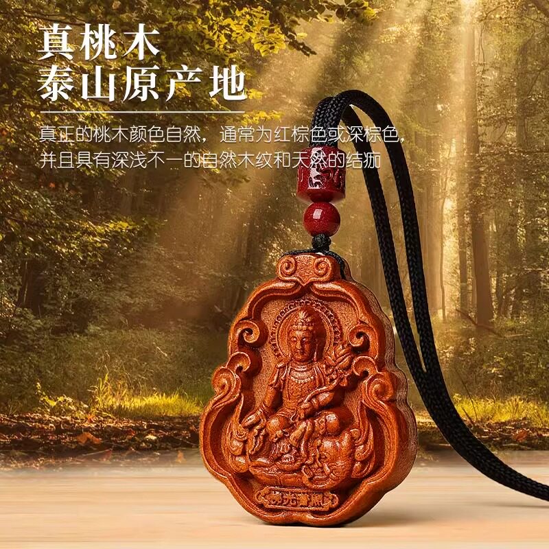 📚 天然老桃木赤马十二生肖本命佛吊坠八大守护神挂件木质护身符项链
