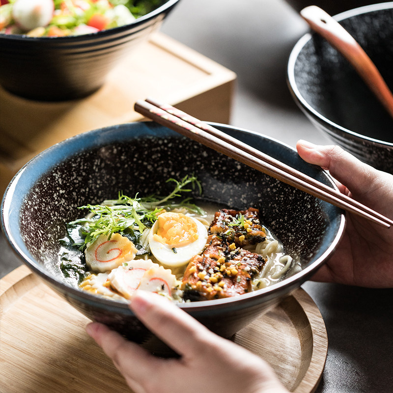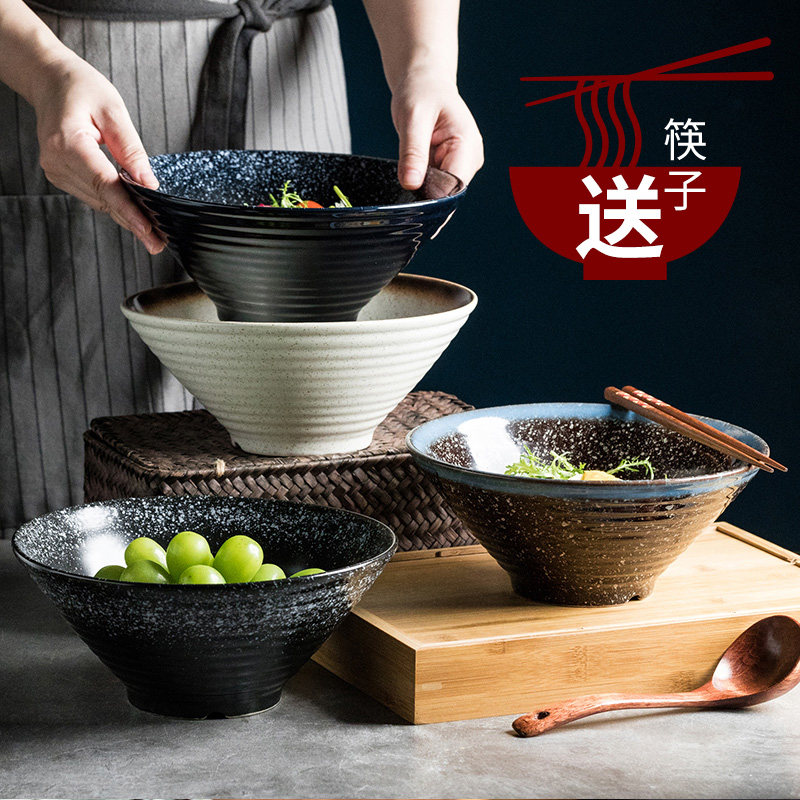 📚 日式复古陶瓷碗拉面碗汤面碗 创意大号泡面碗 家用商用大碗斗笠碗