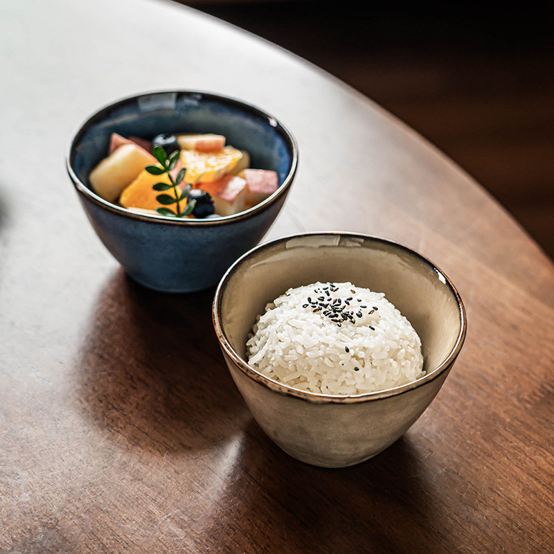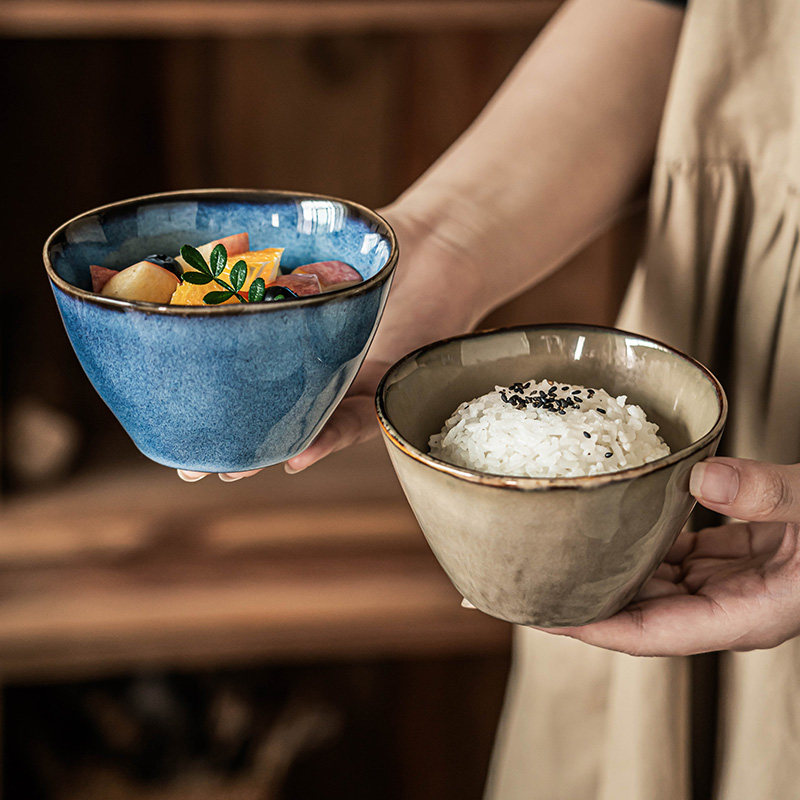 📚 米饭碗日式餐具复古风窑变陶瓷碗家用好看水果沙拉碗小蒸碗调料碗