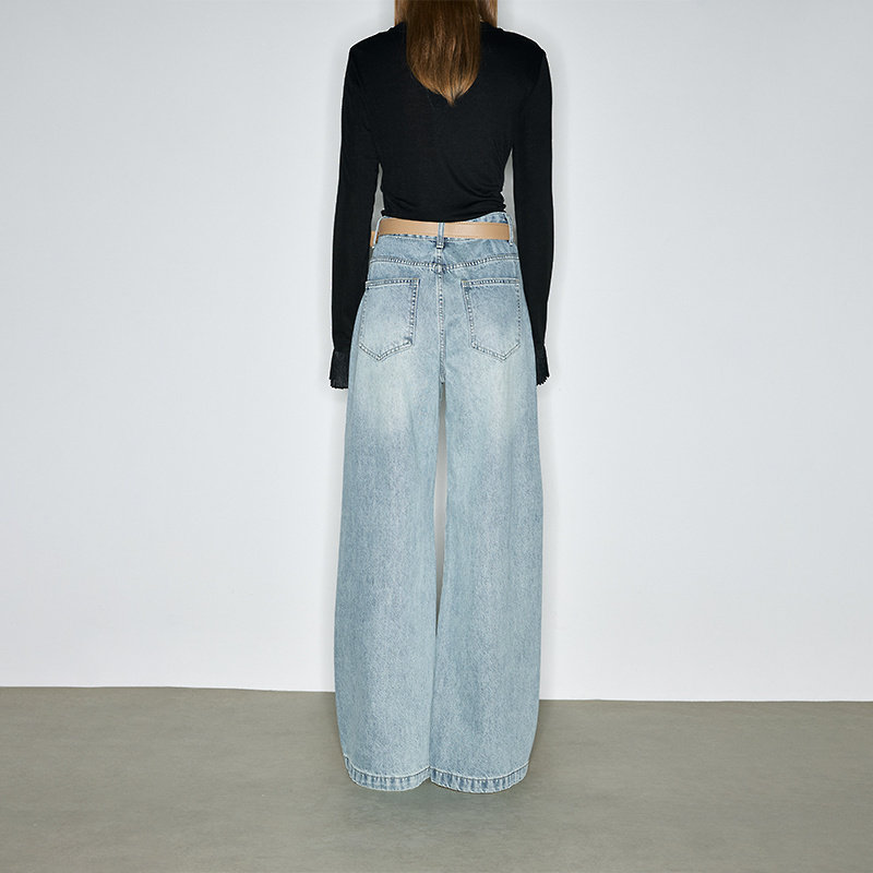 📚 Jamor加墨时尚立体剪裁直筒牛仔裤子蓝色显瘦女装2026春季新款