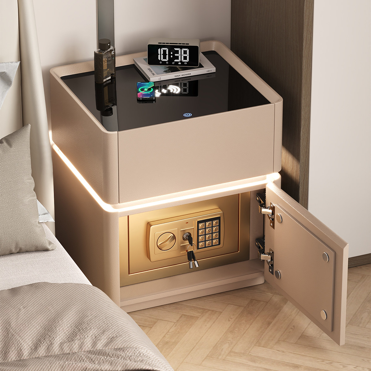📚 智能实木床头柜保险箱一体2026新款家用卧室轻奢高级感小型保险柜