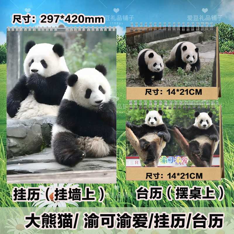 📚 大熊猫挂历福宝2026年台历定制花花萌兰渝可渝爱小奇迹飞云台历