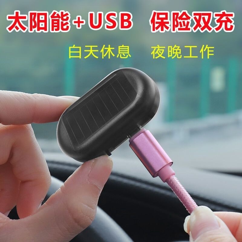 📚 车载太阳能闪烁警示灯防盗灯仿真模拟警示器汽车装饰灯LED车内灯