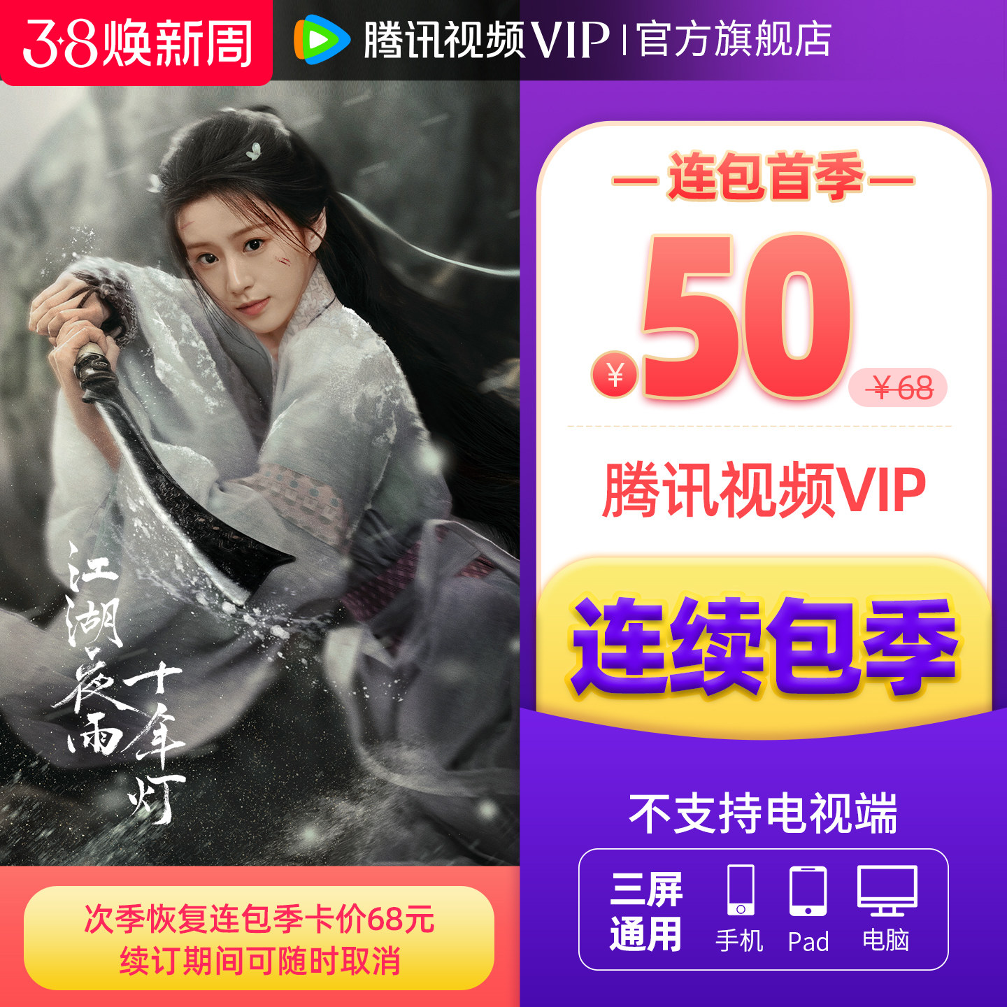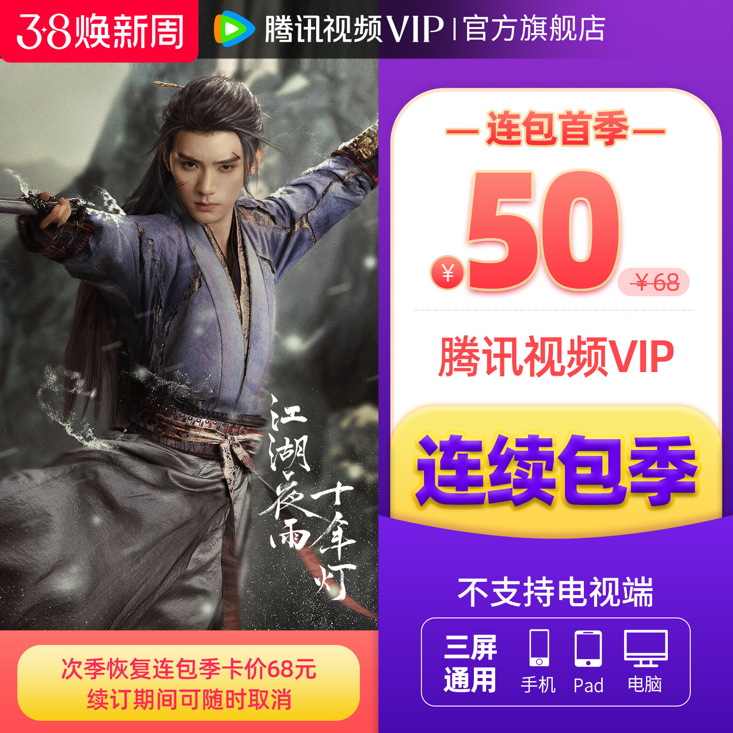 📚 【连续包季】腾讯视频VIP会员季卡不支持电视端3个月