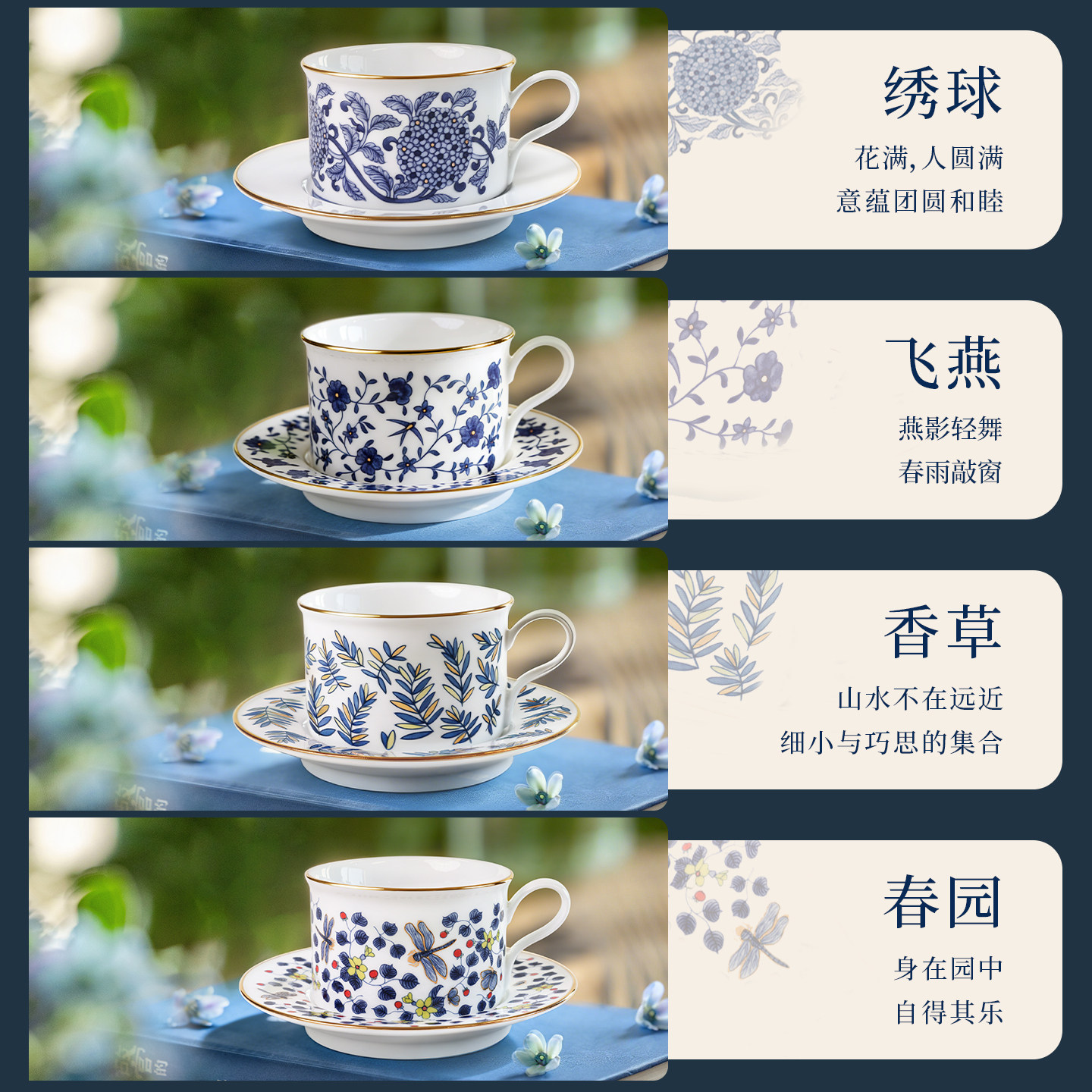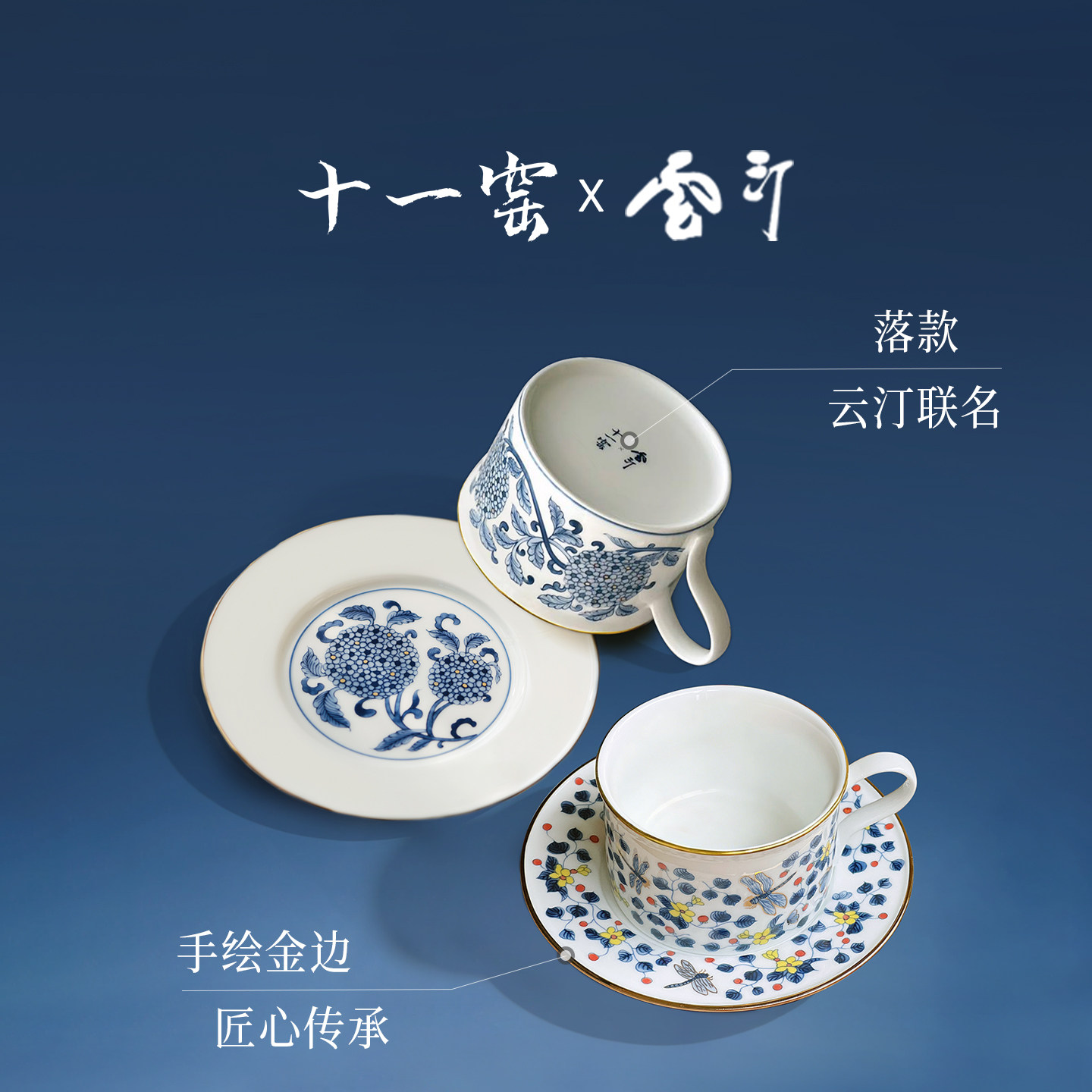 📚 景德镇十一窑云汀青花瓷咖啡杯碟女士中式陶瓷轻奢下午茶茶杯礼物