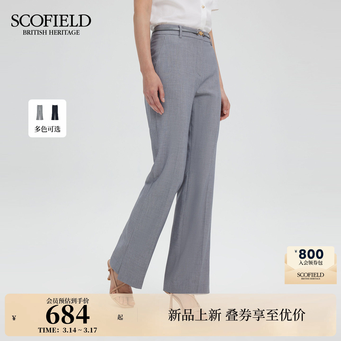 18¥ HU108 lGmfUDzA48H¥ https://m.tb.cn/h.i4arg6N 【防UV】Scofield女装都市洒脱高腰微喇西装长裤2026春季新品 --------------------- 【原售价】1,299元 【现售价】1,299元。