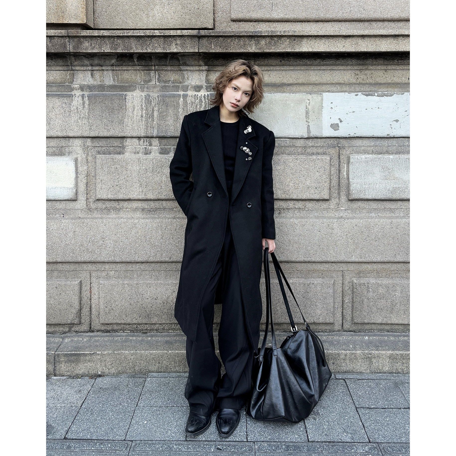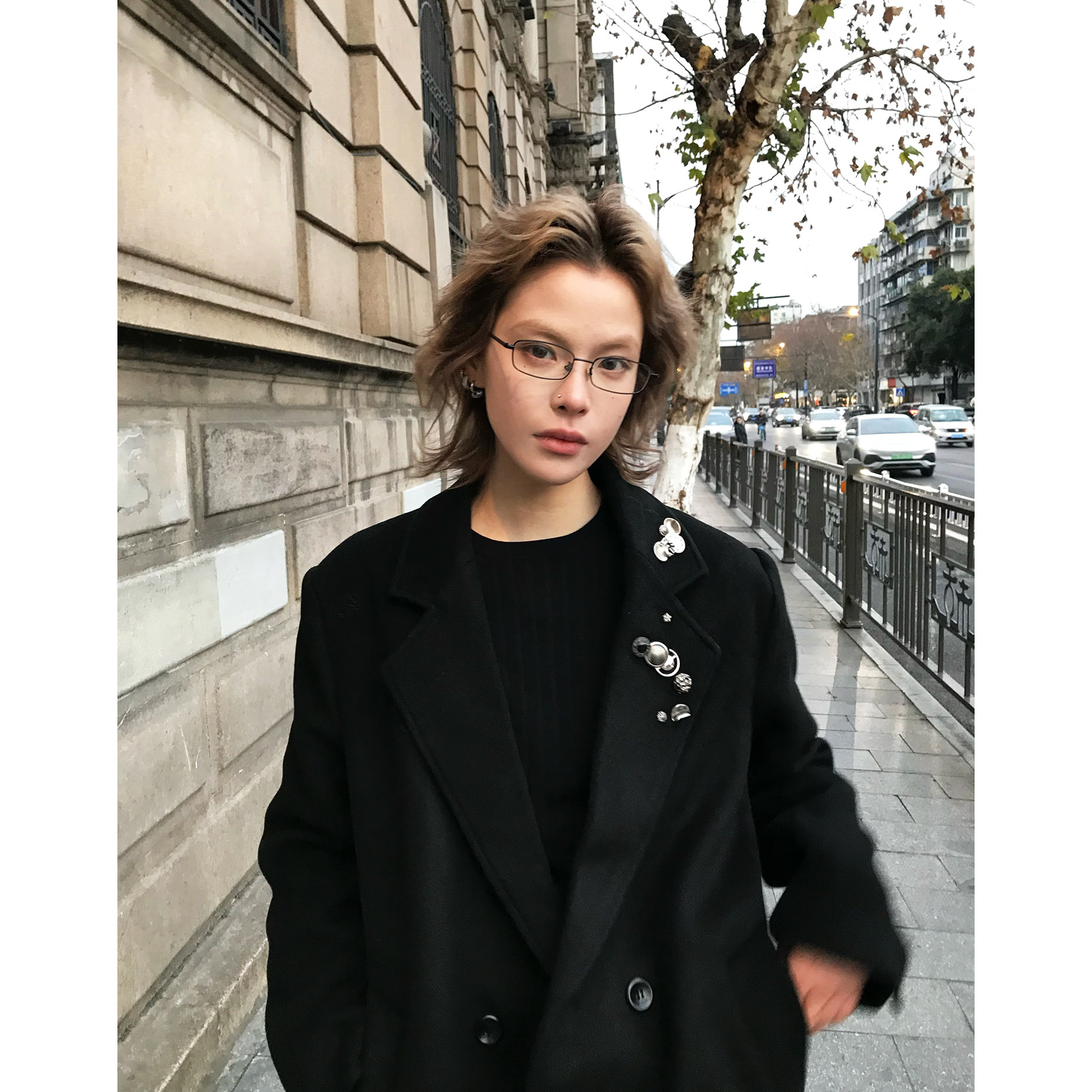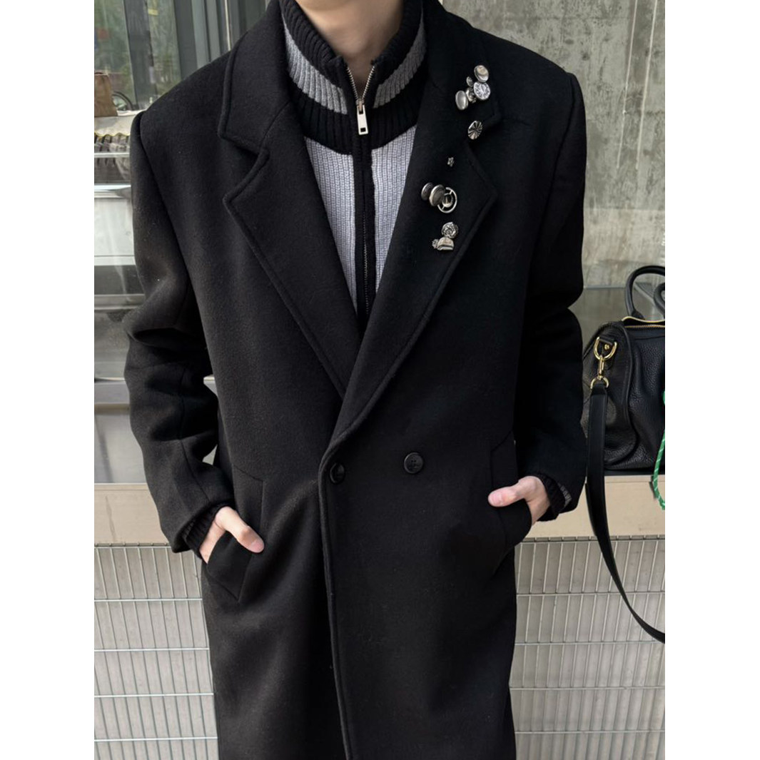 📚 TZ killer 65%羊毛「陨星」金属扣大衣 毛呢长款黑色百搭外套秋冬