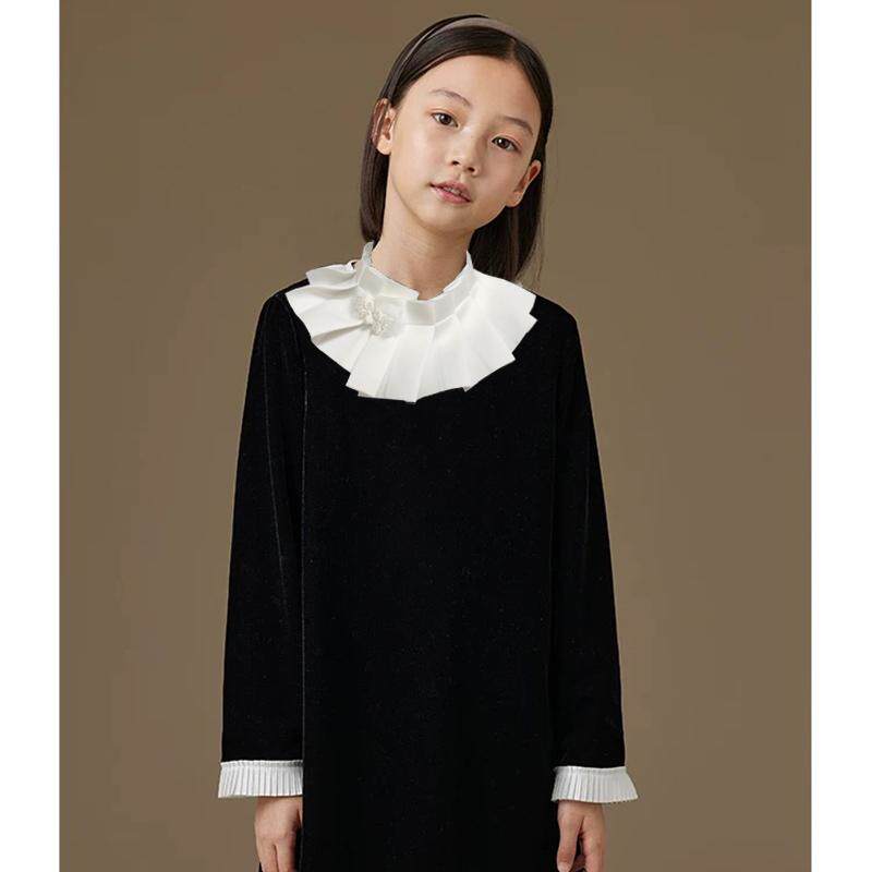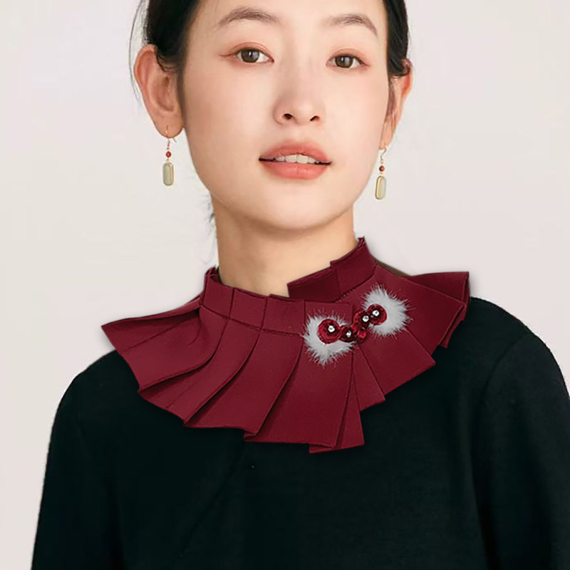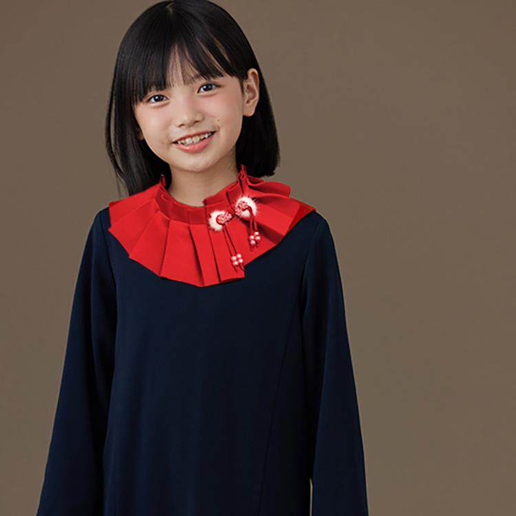 📚 亲子圣诞新年红厚实褶皱国风盘扣假领子女服饰配件新中式儿童披肩